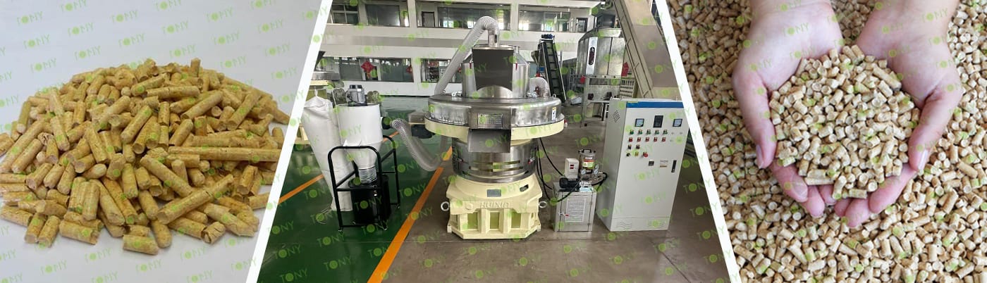 6. Main Equipment: Wood Chipper TPQ216 - 55KW, Effective Hammer Mill -TFD75*100-90KW, TONY Pellet Machine TYJ760-Ⅲ-185KW, Pellet Cooler, Small Packing Machine and Belt Conveyors