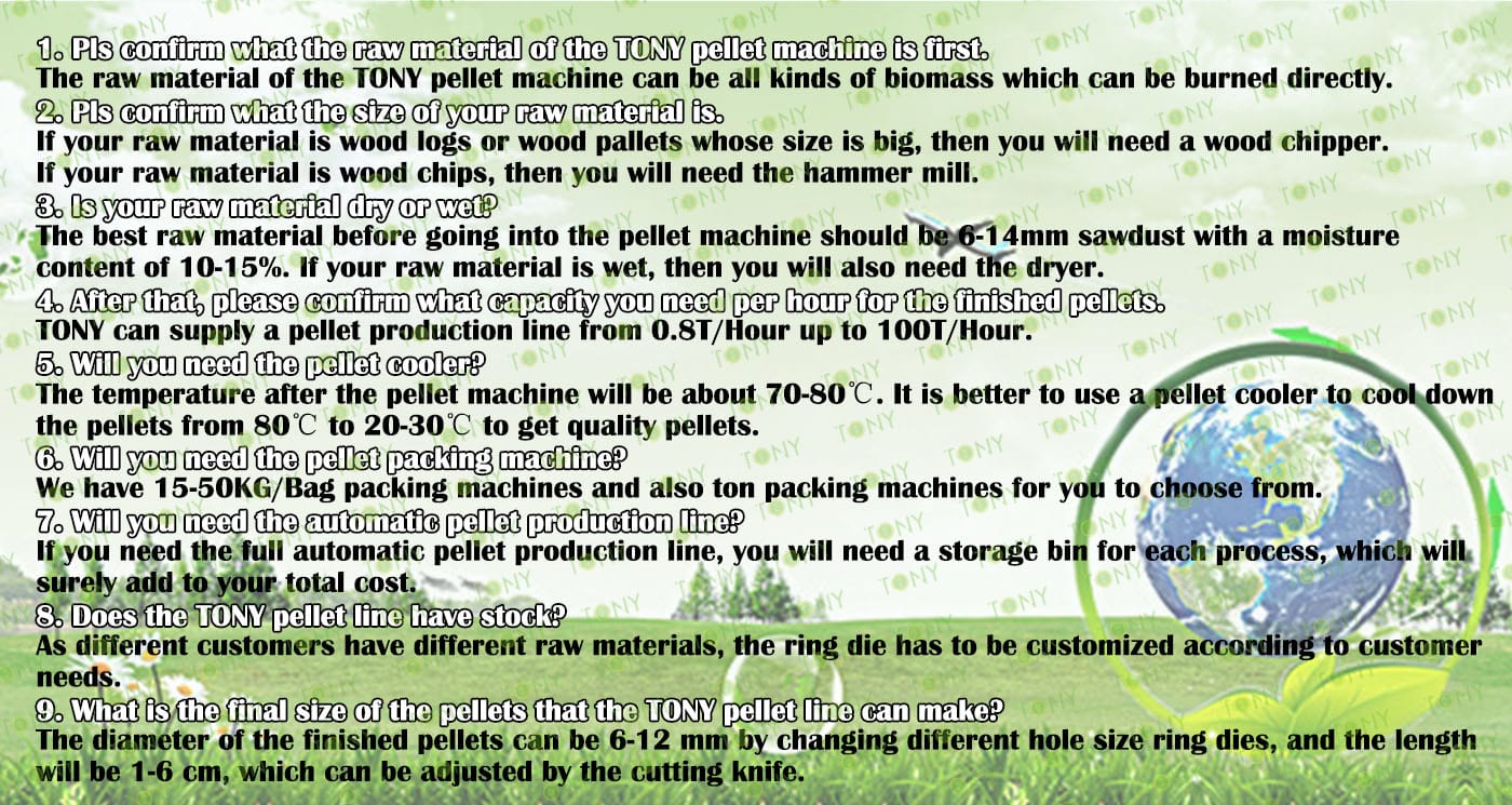 | Next, TONY Will Introduce To You All The Necessary Machinery That Will Be Used For The Whole Pellet Production Line. Some Machines Can Be Custom - Made By Customers According To Different Customers' Detailed Demands. Contact TONY For More Details, Including Quotation And Layout. | ||