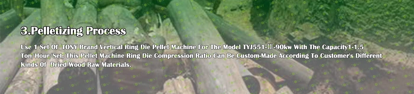 3.TONY Brand 1-1.5Ton /Hour Dried Wood Log Pellet Line Project Process