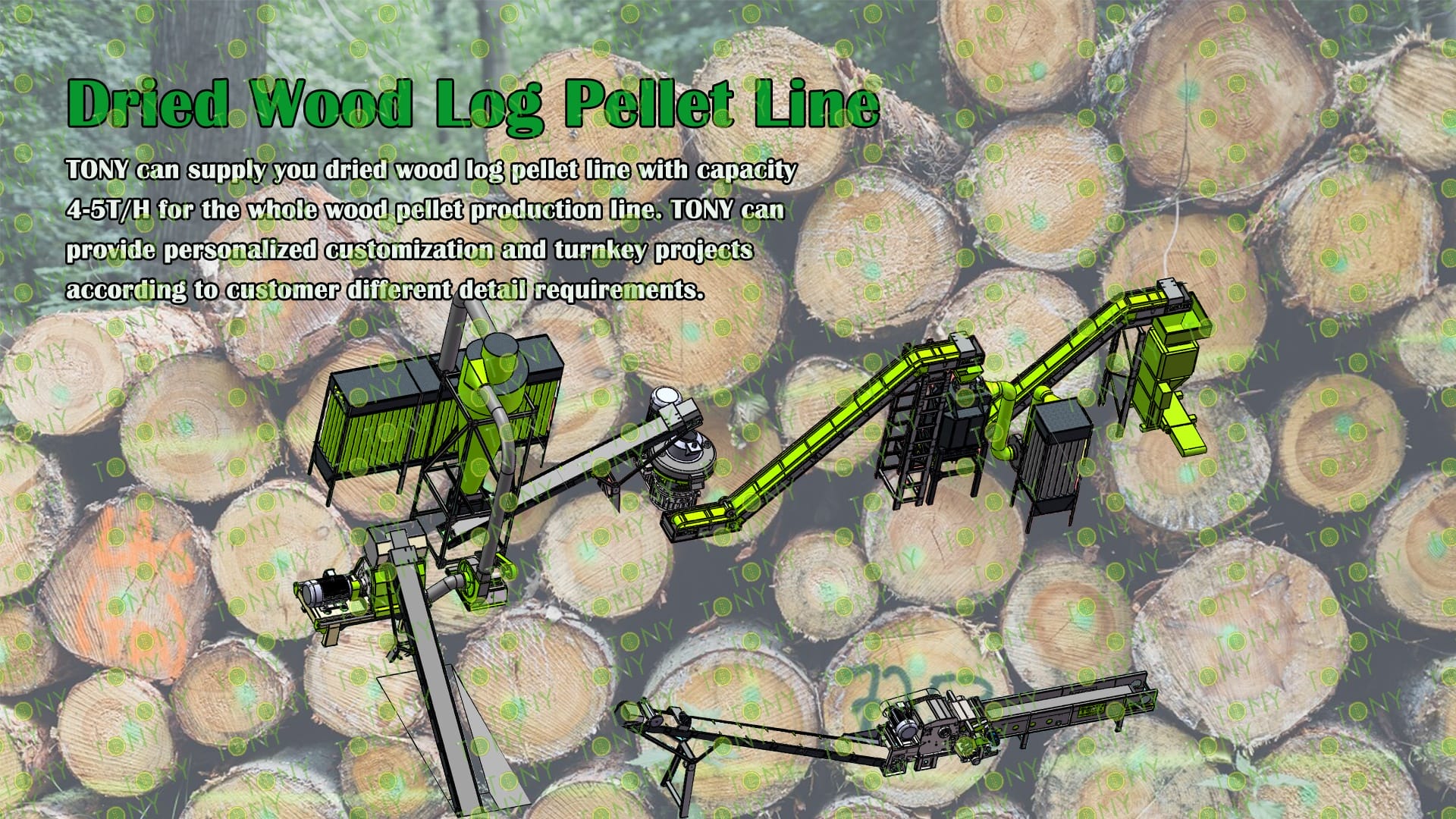 3.TONY Brand 4-5Ton /Hour Dried Wood Log Pellet Line Project Process