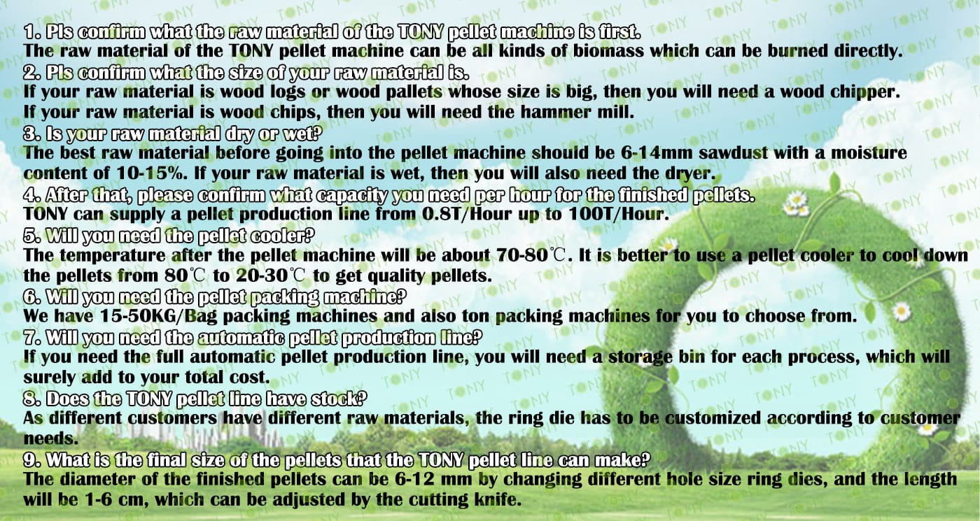 | Next, TONY Will Introduce To You All The Necessary Machinery That Will Be Used For The Whole Pellet Production Line. Some Machines Can Be Custom - Made By Customers According To Different Customers' Detailed Demands. Contact TONY For More Details, Including Quotation And Layout. | ||