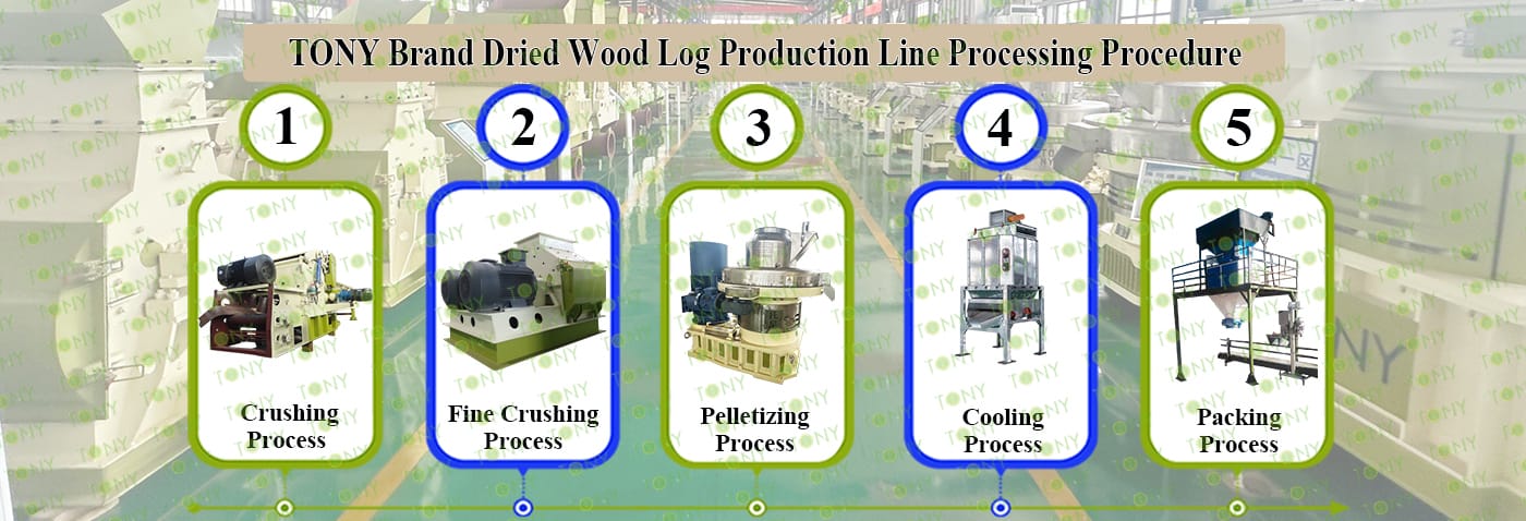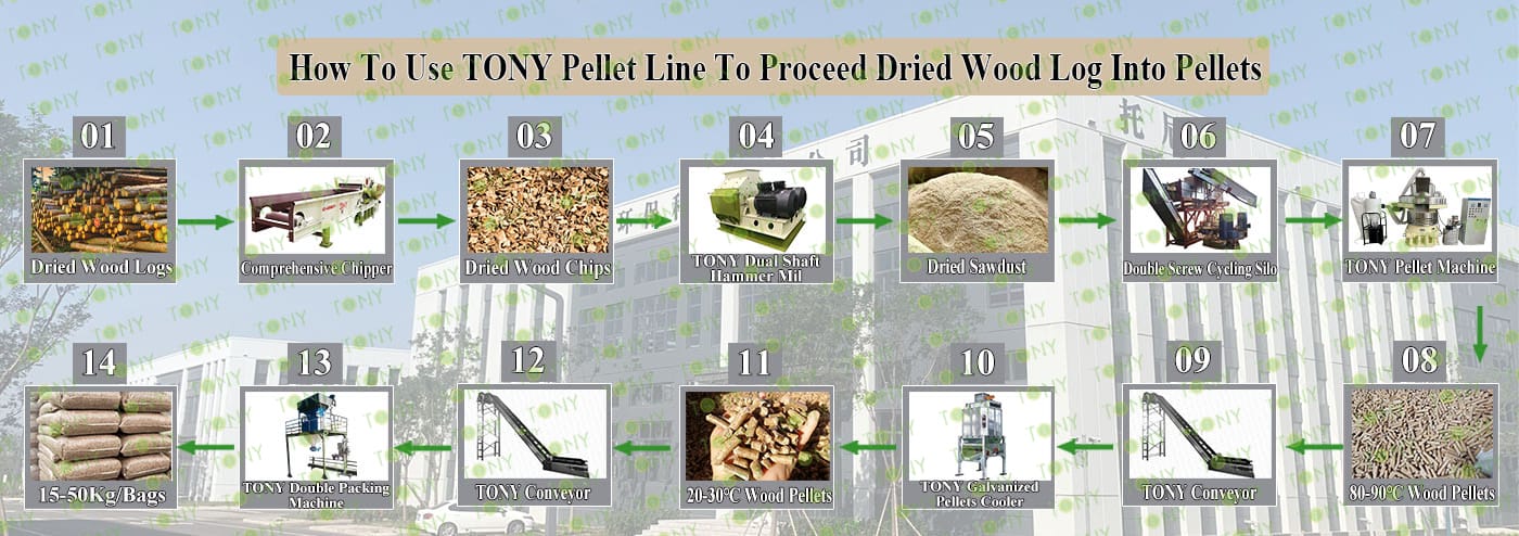 3.TONY Brand 5.5-6.5 Ton /Hour Dried Wood Log Pellet Line Project Process