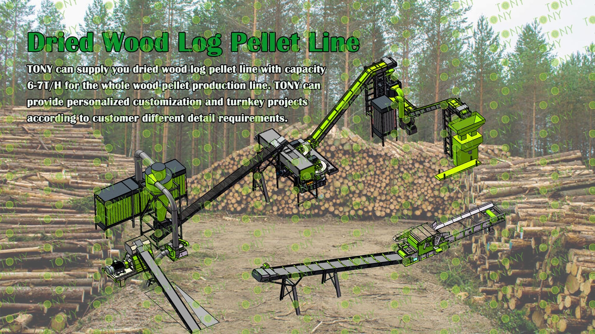 3.TONY Brand 6-7Ton /Hour Dried Wood Log Pellet Line Project Process