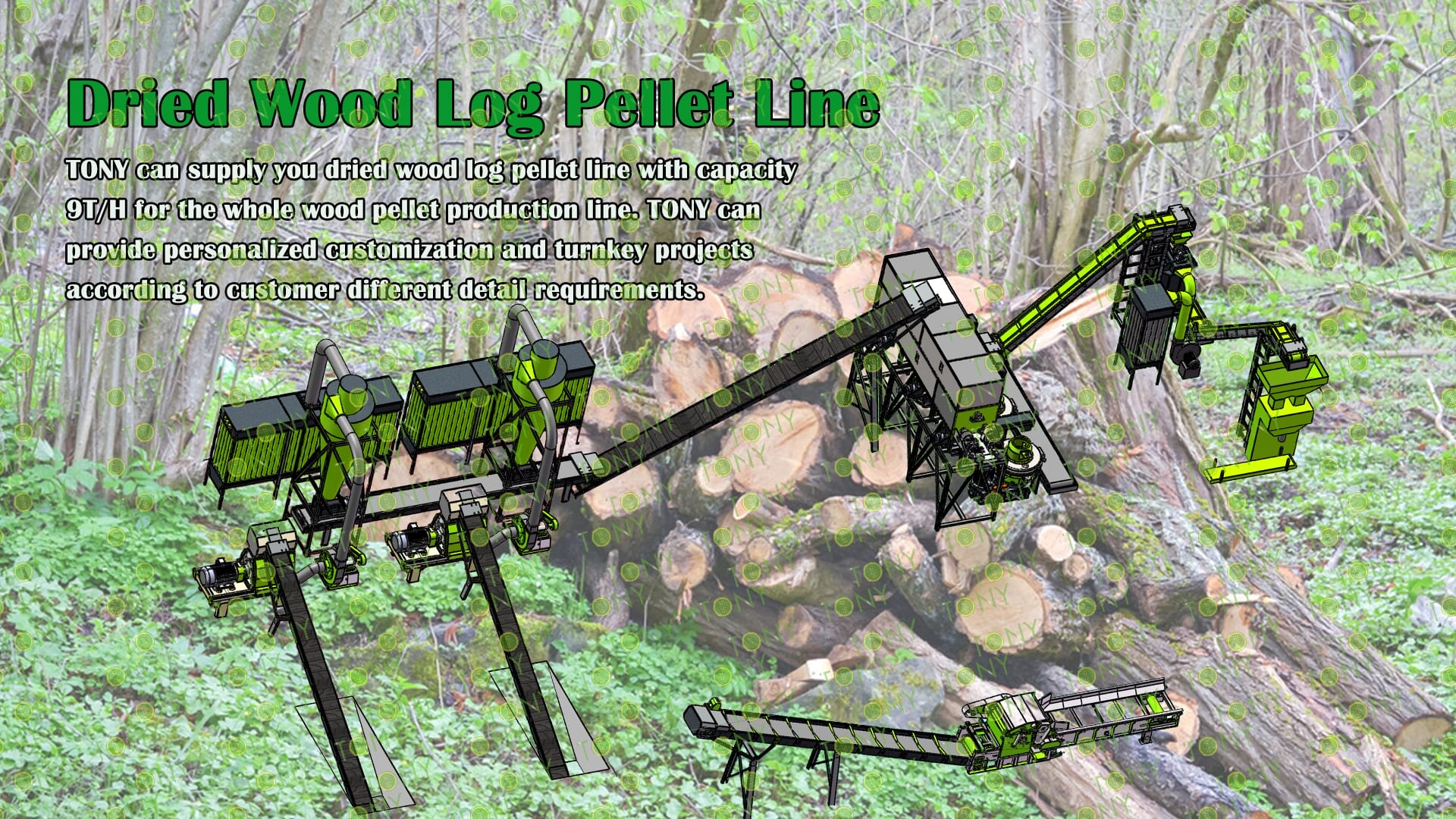 3.TONY Brand 9Ton /Hour Dried Wood Log Pellet Line Project Process