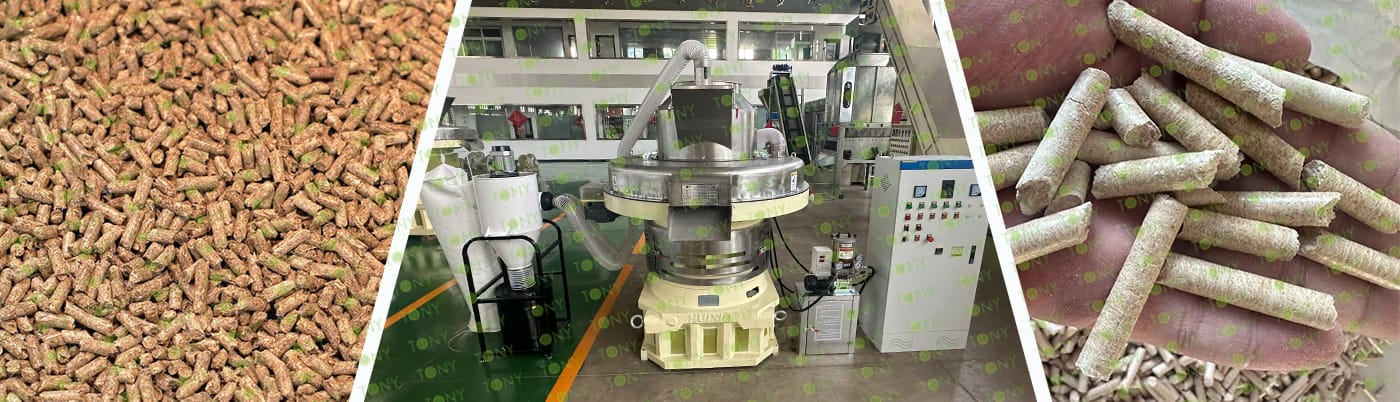 4.Main Machine: Comprehensive Chipper,Hammer Mill,TONY Pellet MachineTYJ760-Ⅲ-160KW,Pellets Cooler,Packing Machine And Belt Conveyors