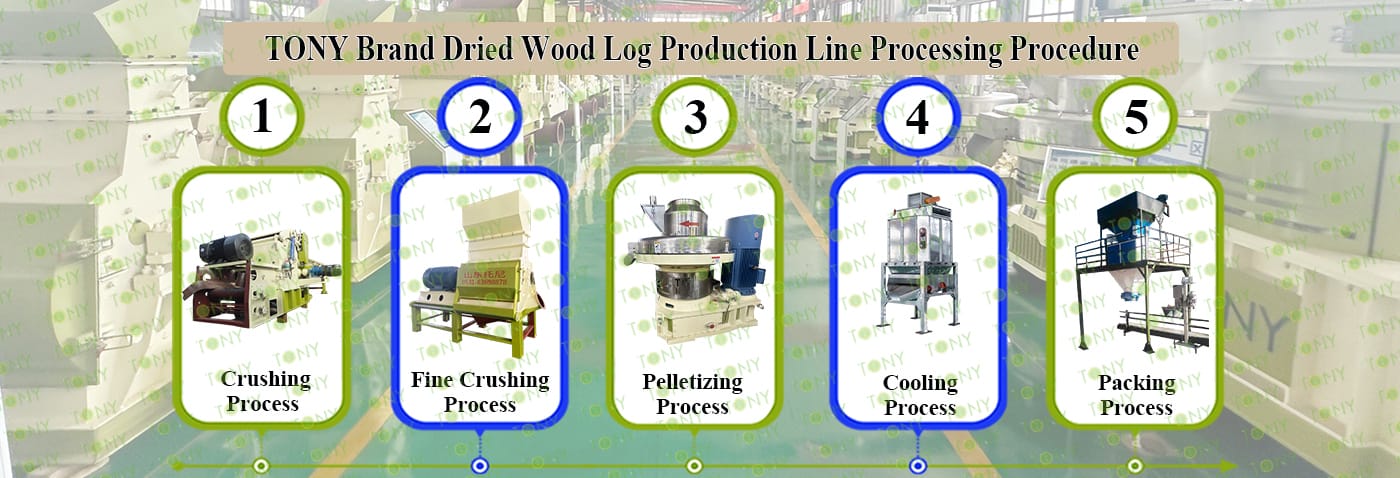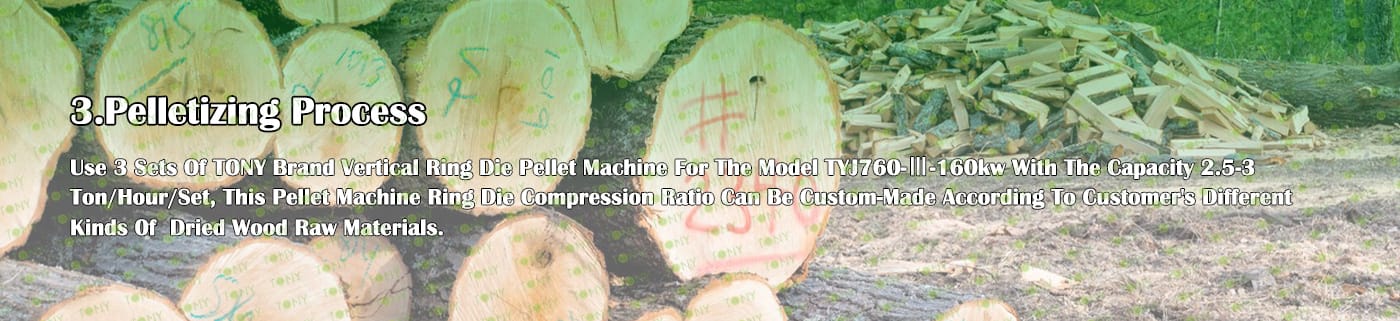3.TONY Brand 7.5-9 Ton /Hour Dried Wood Log Pellet Line Project Process