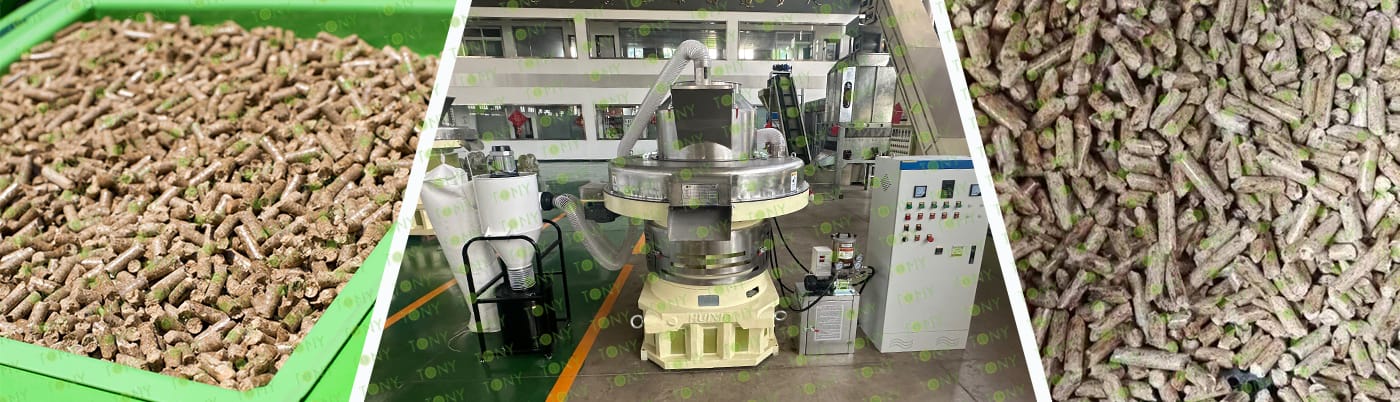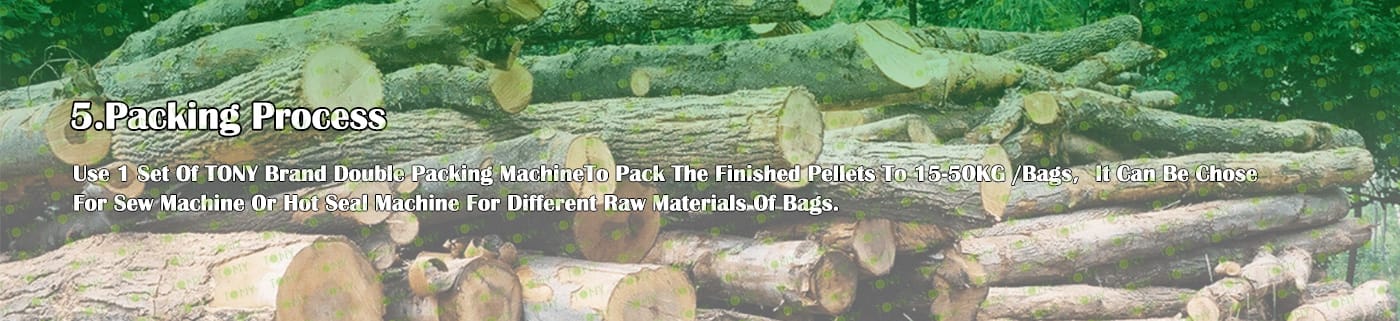 6. Main Equipment:Comprehensive Chipper TPC1300-600 -132KW,Effective Hammer Mill-TFD75*132-132kw, TONY Pellet Machine TYJ760 - Ⅲ - 185kw, Pellet Cooler, Double Packing Machine and Belt Conveyors