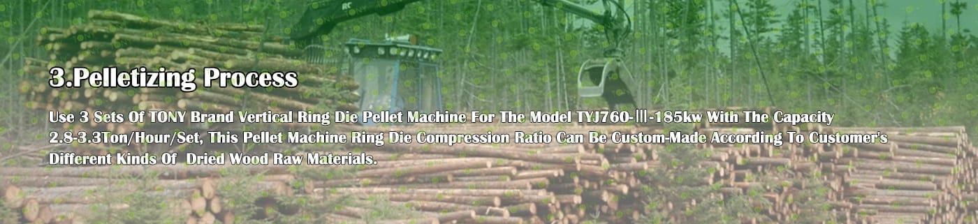 4.Main Machine: Comprehensive Chipper,Hammer Mill,TONY Pellet MachineTYJ760-Ⅲ-185KW,Pellets Cooler,Packing Machine And Belt Conveyors