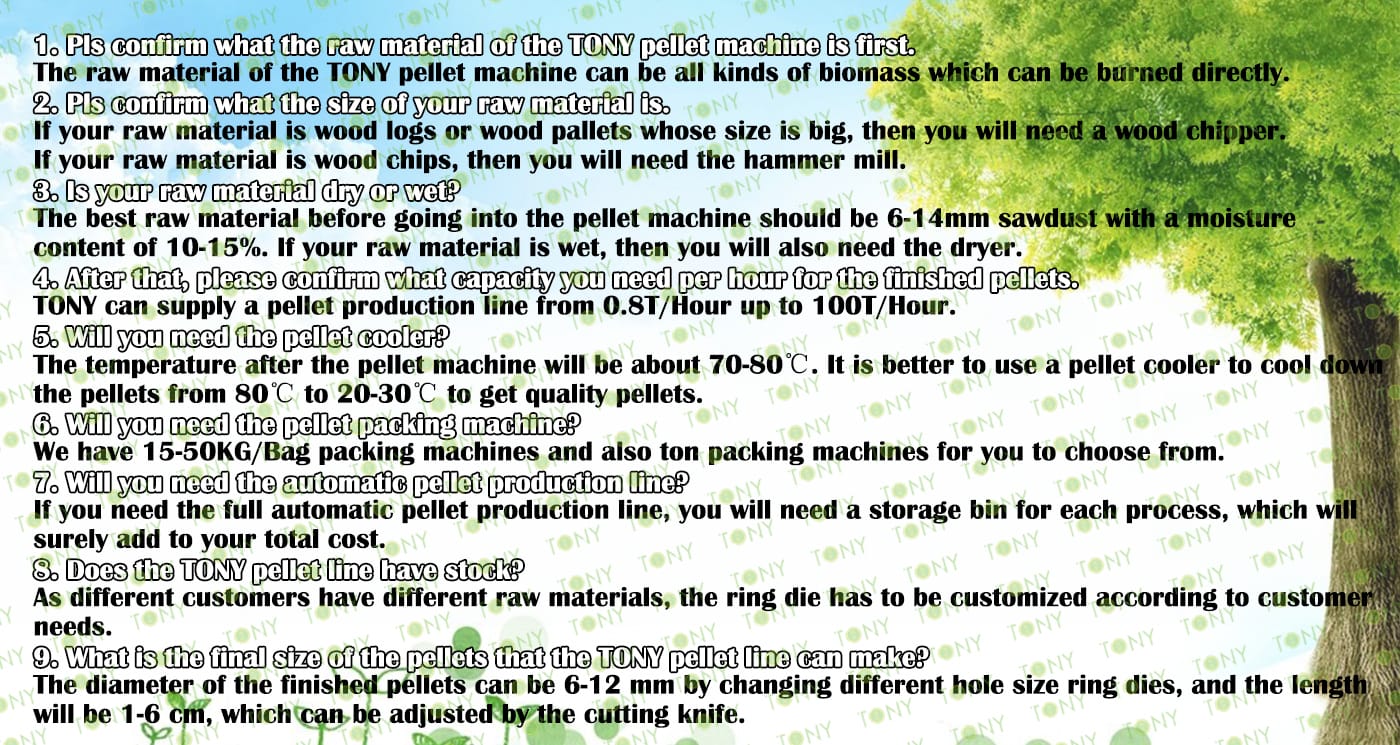| Next, TONY Will Introduce To You All The Necessary Machinery That Will Be Used For The Whole Pellet Production Line. Some Machines Can Be Custom - Made By Customers According To Different Customers' Detailed Demands. Contact TONY For More Details, Including Quotation And Layout. | ||