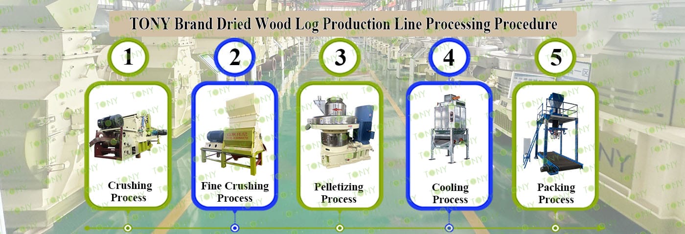 3.TONY Brand 12-14Ton /Hour Dried Wood Log Pellet Line Project Process