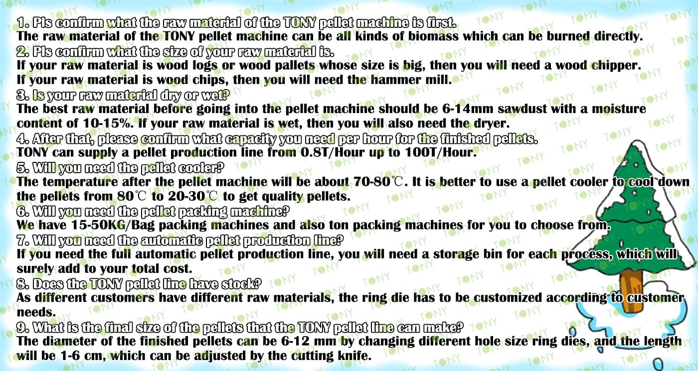 | Next, TONY Will Introduce To You All The Necessary Machinery That Will Be Used For The Whole Pellet Production Line. Some Machines Can Be Custom - Made By Customers According To Different Customers' Detailed Demands. Contact TONY For More Details, Including Quotation And Layout. | ||