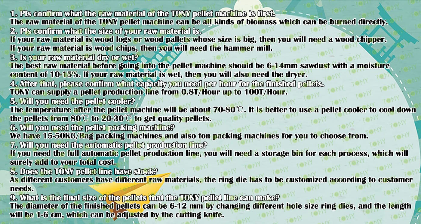 | Next, TONY Will Introduce To You All The Necessary Machinery That Will Be Used For The Whole Pellet Production Line. Some Machines Can Be Custom - Made By Customers According To Different Customers' Detailed Demands. Contact TONY For More Details, Including Quotation And Layout. | ||