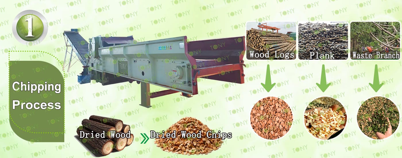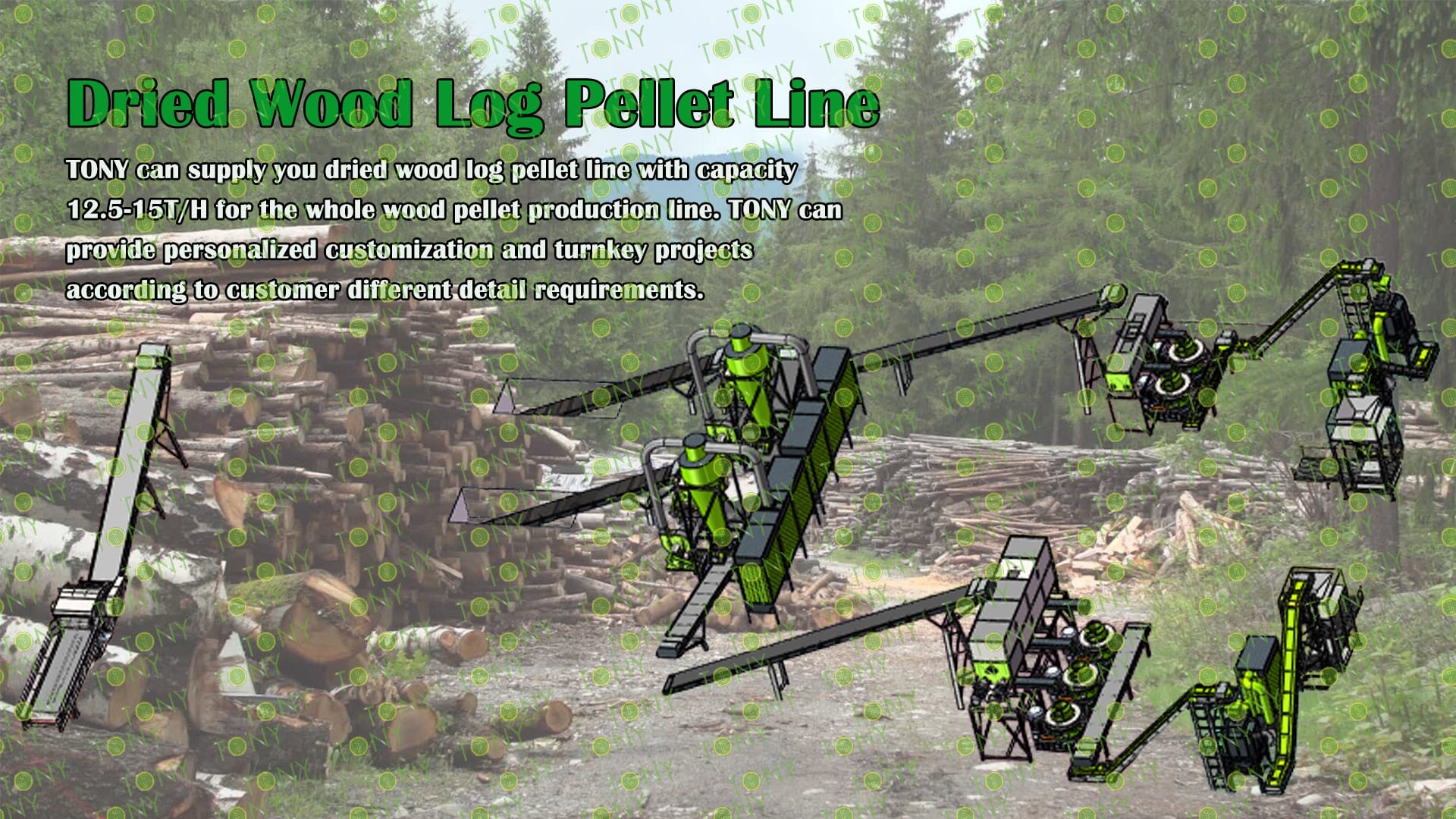 3.TONY Brand 12.5-15Ton /Hour Dried Wood Log Pellet Line Project Process