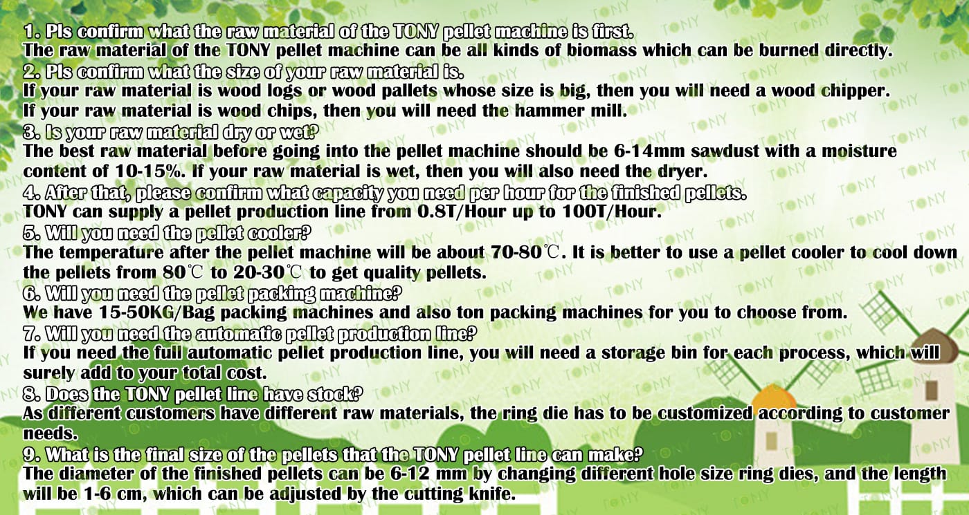 | Next, TONY Will Introduce To You All The Necessary Machinery That Will Be Used For The Whole Pellet Production Line. Some Machines Can Be Custom - Made By Customers According To Different Customers' Detailed Demands. Contact TONY For More Details, Including Quotation And Layout. | ||