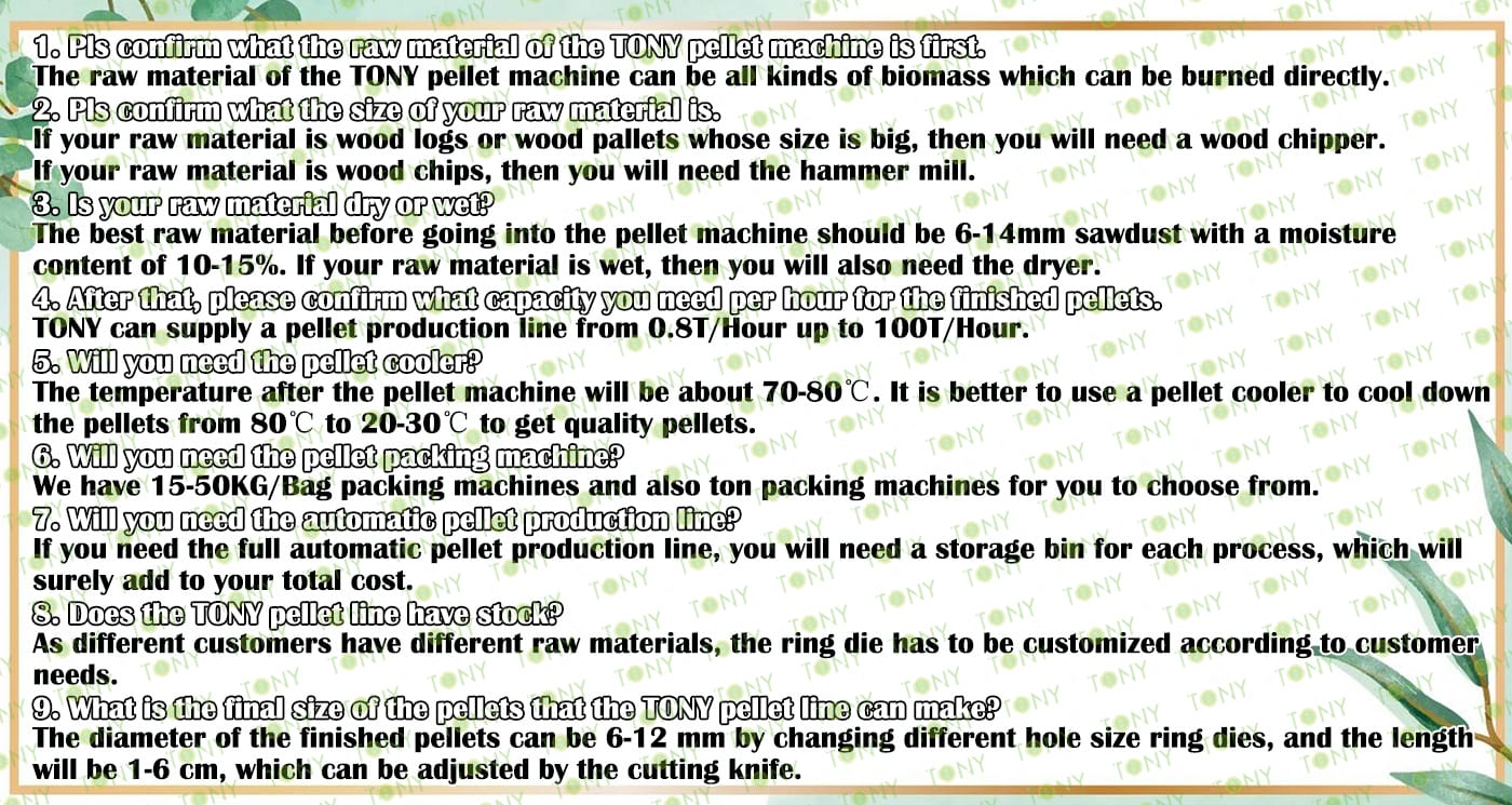 | Next, TONY Will Introduce To You All The Necessary Machinery That Will Be Used For The Whole Pellet Production Line. Some Machines Can Be Custom - Made By Customers According To Different Customers' Detailed Demands. Contact TONY For More Details, Including Quotation And Layout. | ||