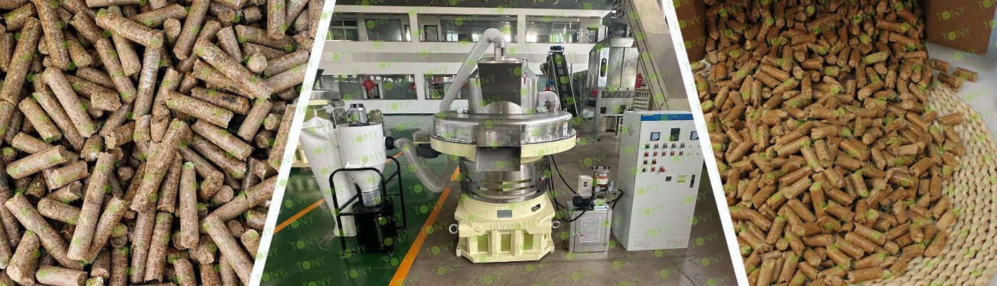 6. Main Equipment: Comprehensive Chipper TPC1400-700-250KW, Effective Hammer Mill-TFD85*250-250KW, TONY Pellet Machine TYJ860-Ⅲ-250KW, Pellet Cooler, Ton Packing Machine and Belt Conveyors