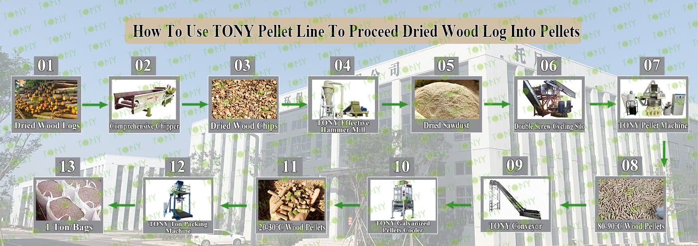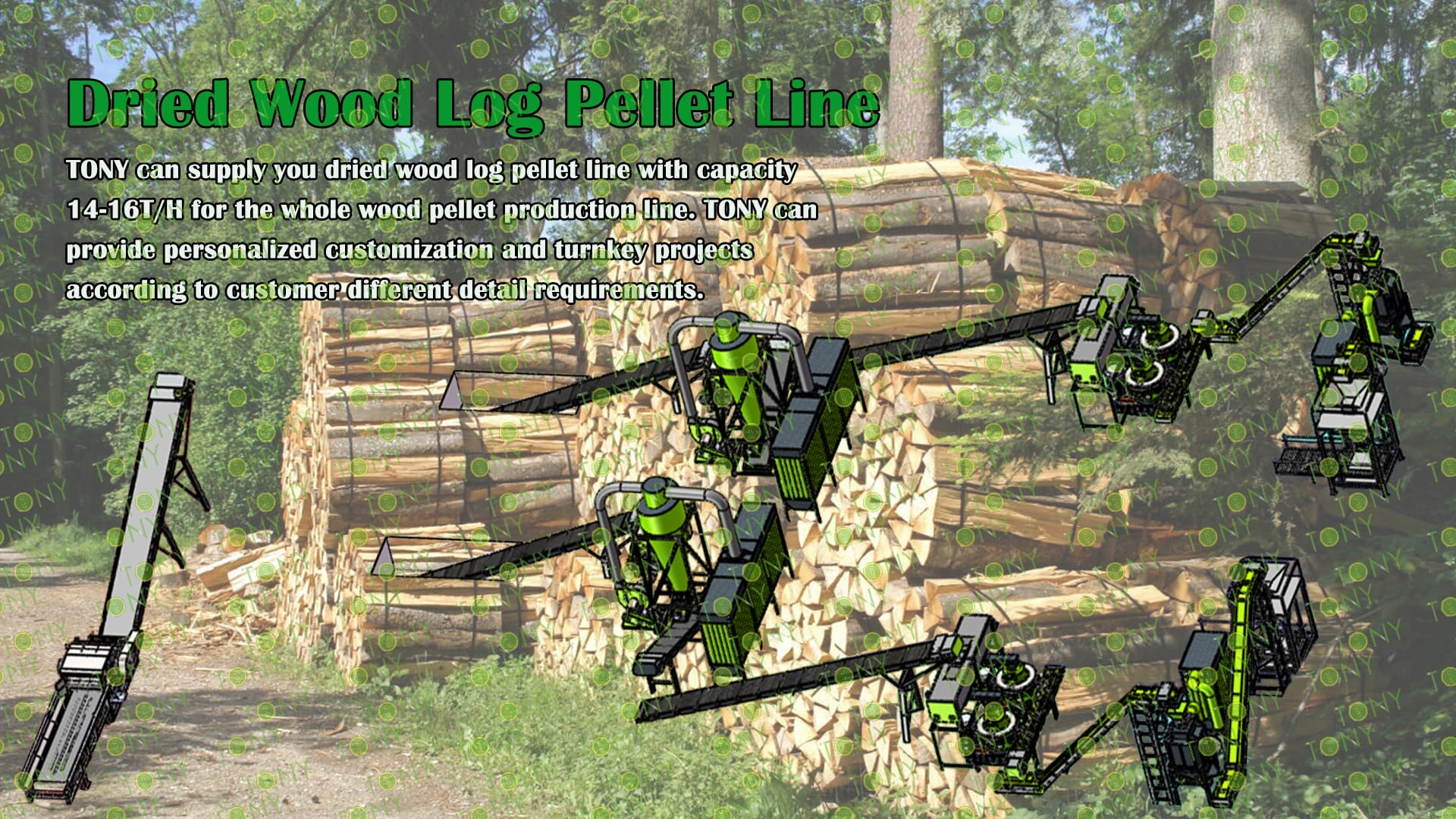 3.TONY Brand 14-16Ton /Hour Dried Wood Log Pellet Line Project Process