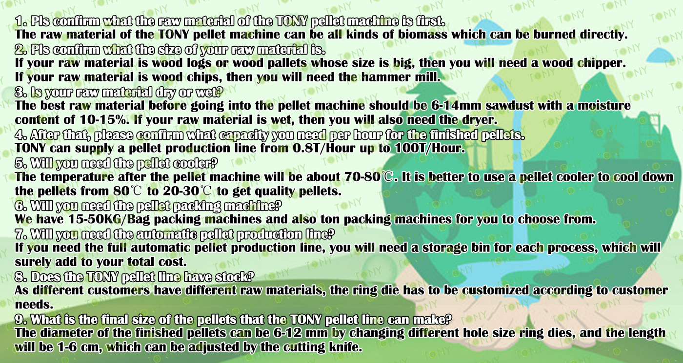 | Next, TONY Will Introduce To You All The Necessary Machinery That Will Be Used For The Whole Pellet Production Line. Some Machines Can Be Custom - Made By Customers According To Different Customers' Detailed Demands. Contact TONY For More Details, Including Quotation And Layout. | ||