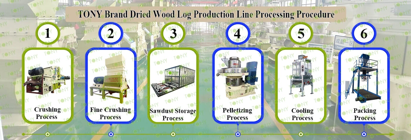 3.TONY Brand 18-20Ton /Hour Dried Wood Log Pellet Line Project Process