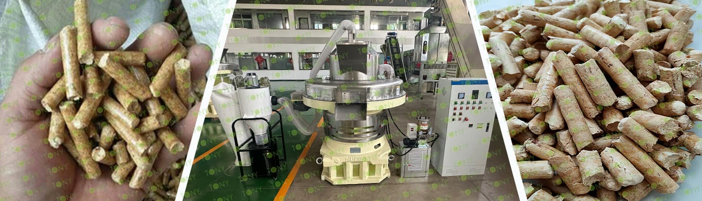 6. Main Equipment: Comprehensive Chipper TPC1300-600-160KW, Effective Hammer Mill-TFD75*132-132KW, TONY Large Hydraulic Storage Silo,TONY Pellet Machine TYJ860-Ⅲ-280KW, Pellet Cooler, Ton Packing Machine and Belt Conveyors