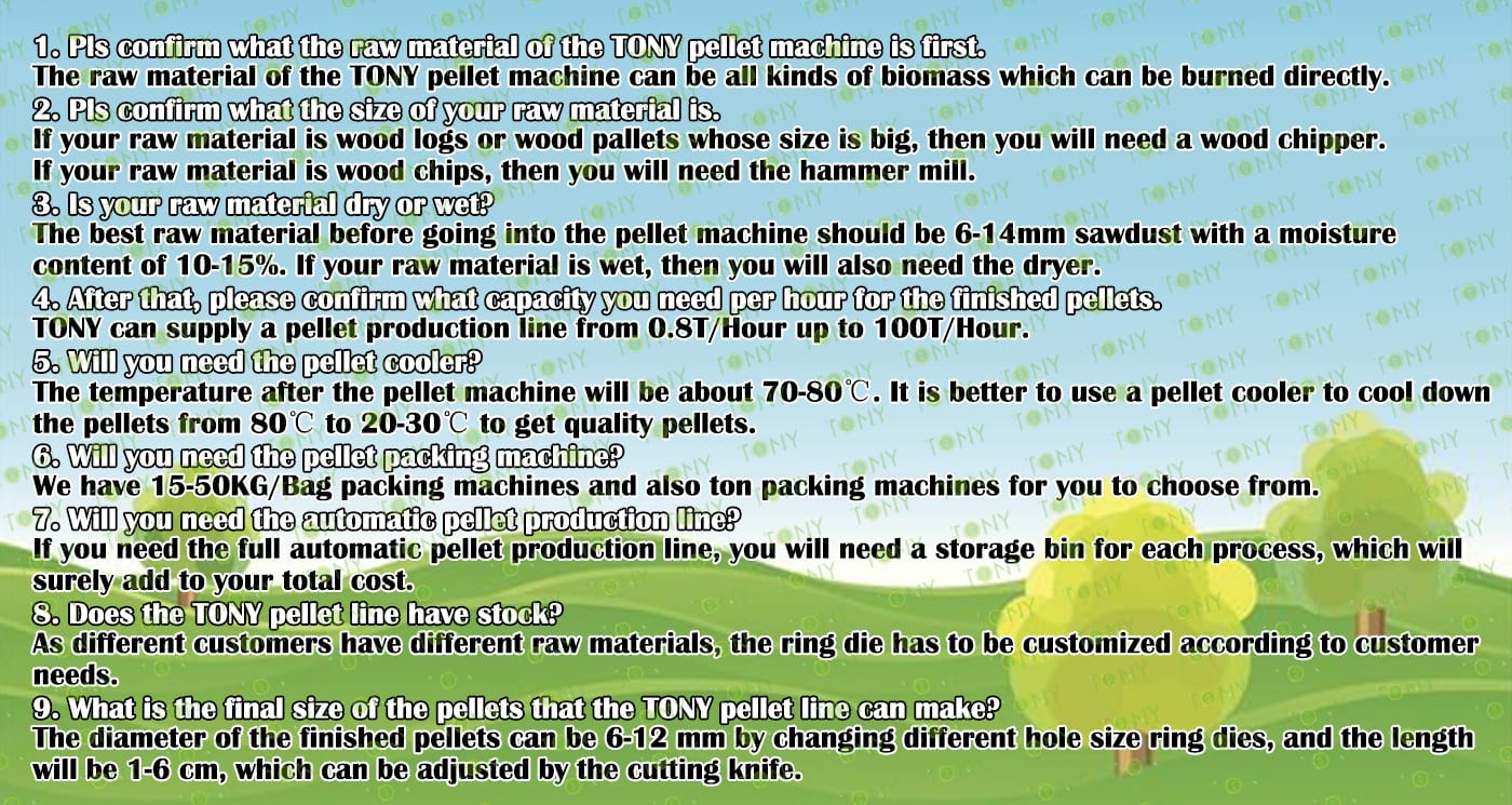 | Next, TONY Will Introduce To You All The Necessary Machinery That Will Be Used For The Whole Pellet Production Line. Some Machines Can Be Custom - Made By Customers According To Different Customers' Detailed Demands. Contact TONY For More Details, Including Quotation And Layout. | ||
