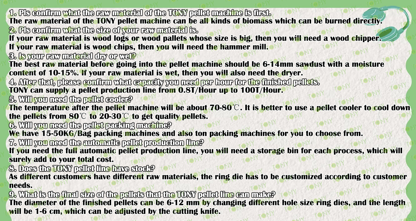 | Next, TONY Will Introduce To You All The Necessary Machinery That Will Be Used For The Whole Pellet Production Line. Some Machines Can Be Custom - Made By Customers According To Different Customers' Detailed Demands. Contact TONY For More Details, Including Quotation And Layout. | ||
