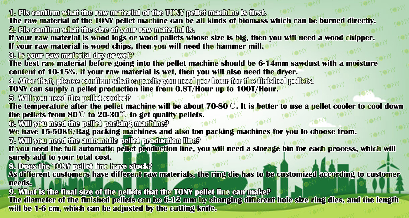 | Next, TONY Will Introduce To You All The Necessary Machinery That Will Be Used For The Whole Pellet Production Line. Some Machines Can Be Custom - Made By Customers According To Different Customers' Detailed Demands. Contact TONY For More Details, Including Quotation And Layout. | ||