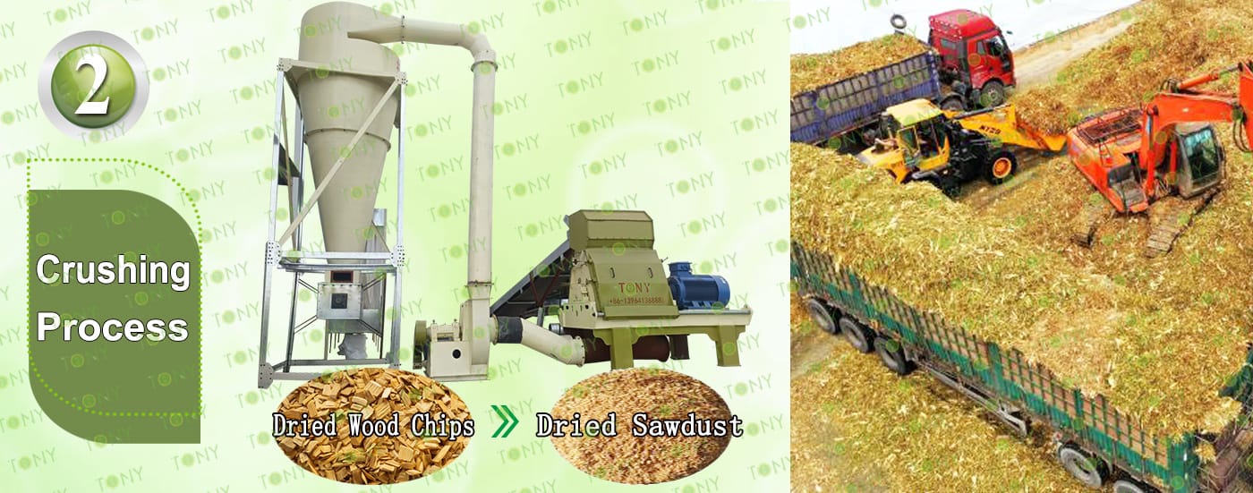 2.Wood Chips Fine Crushing Process: