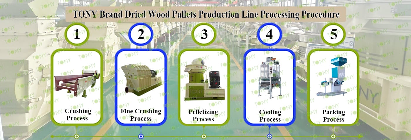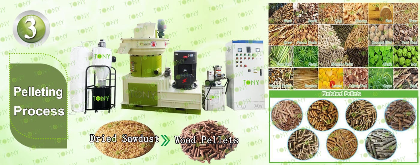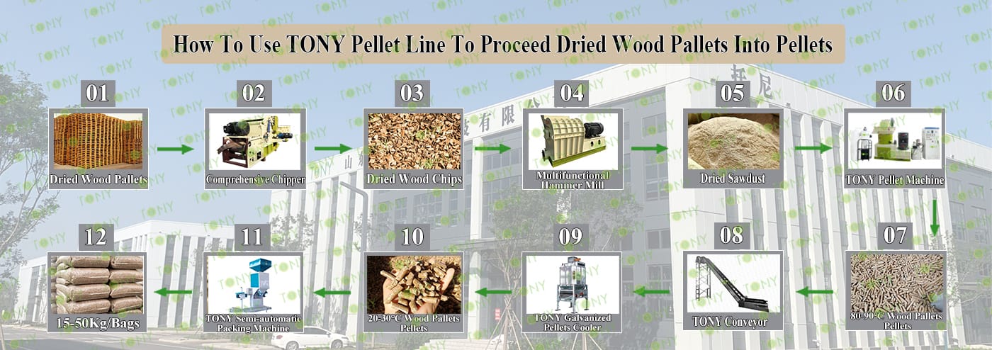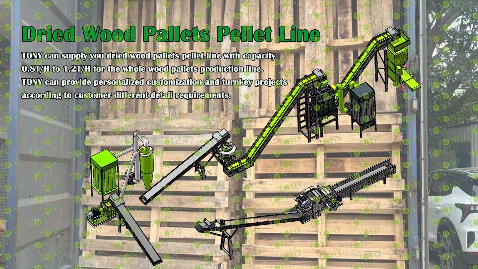 3.TONY Brand 0.8-1.2Ton /HourDried Wood Pallets Pellet Line Project Process