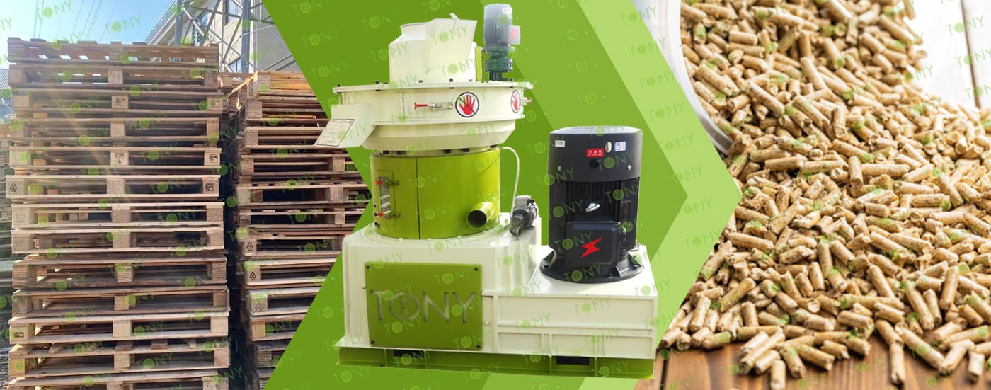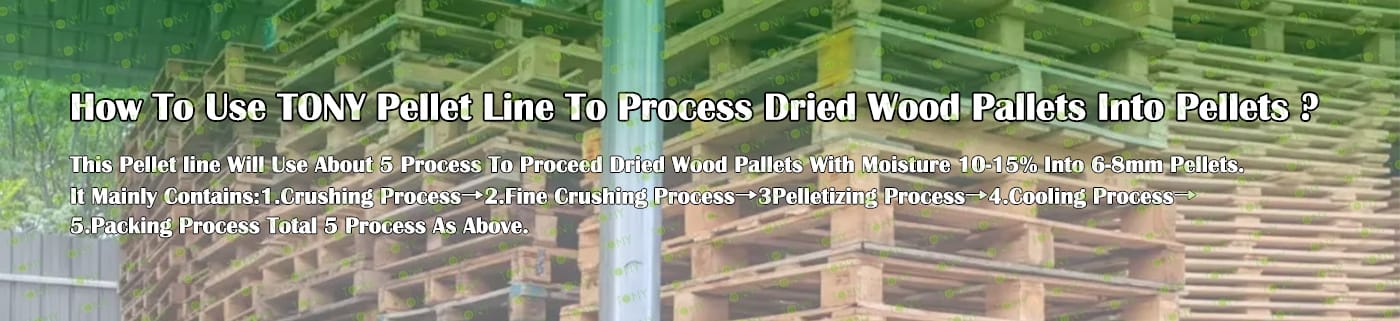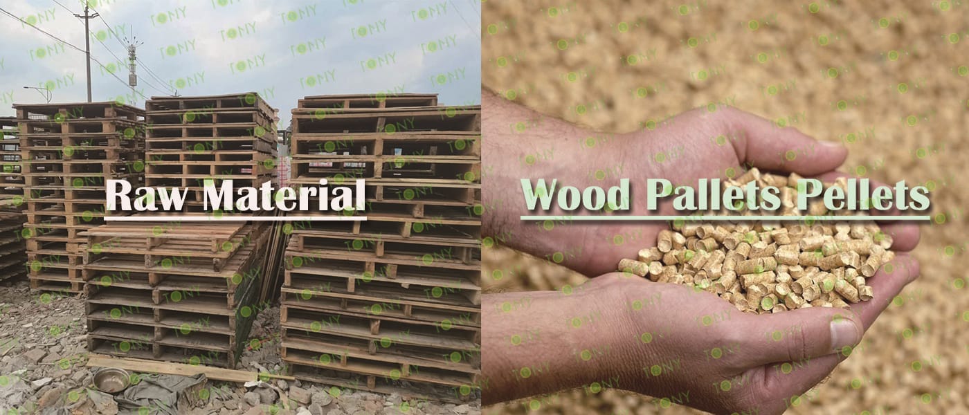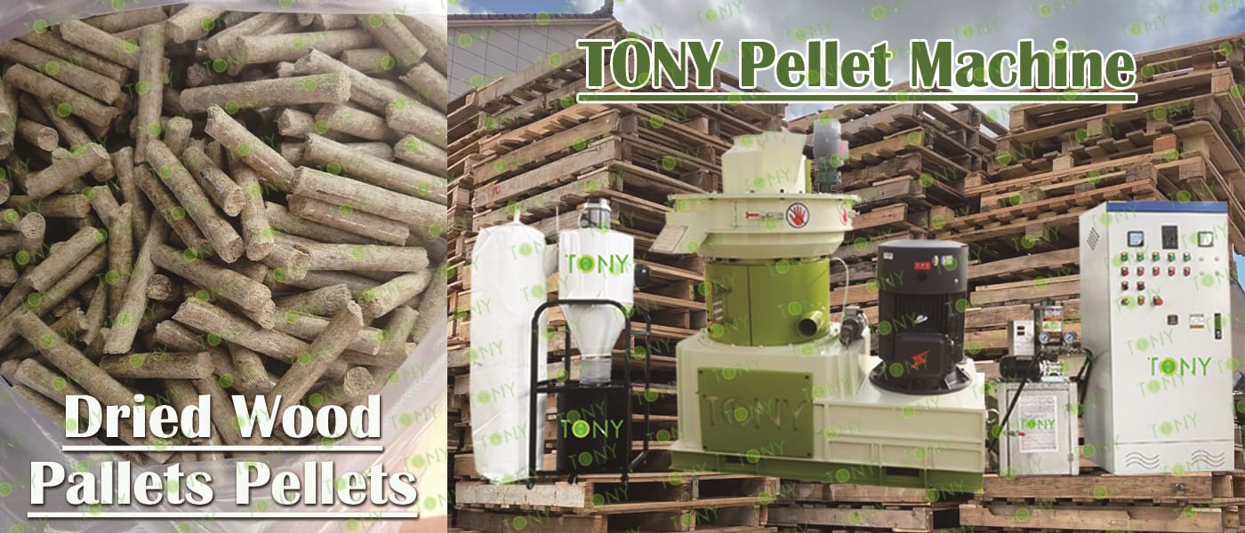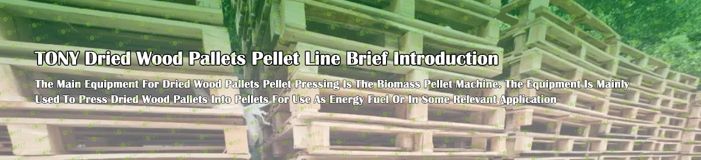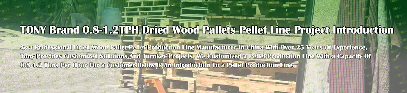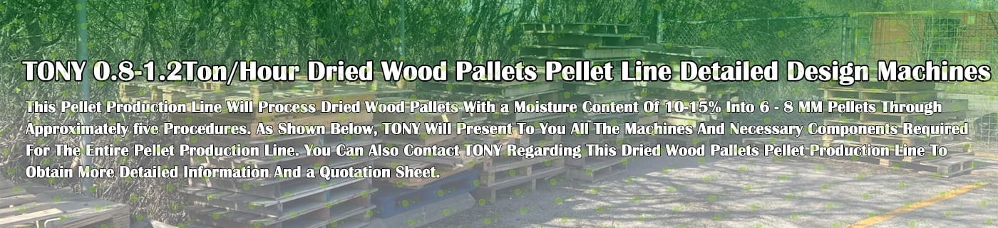 TONY Brand 0.8-1.2Ton/Hour Dried Wood Pallets Pellet Manufacturing Plant can take dried wood pallets, various types of wood - related biomass materials, such as branches, small - diameter logs, and wood shavings. After pretreatment and processing, dried wood pallets is solidified into high - density wood pellet fuel.The content of pollutants such as sulfur dioxide and nitrogen oxides produced by biomass pellets during combustion is extremely low, and the dust emission is also low, which can effectively reduce air pollution. Moreover, the raw material sources of biomass pellets are very wide, and the combustion efficiency is high. Compared with traditional fossil energy, it reduces the production and use costs and has higher economic efficiency. It has received a lot of attention and promotion.