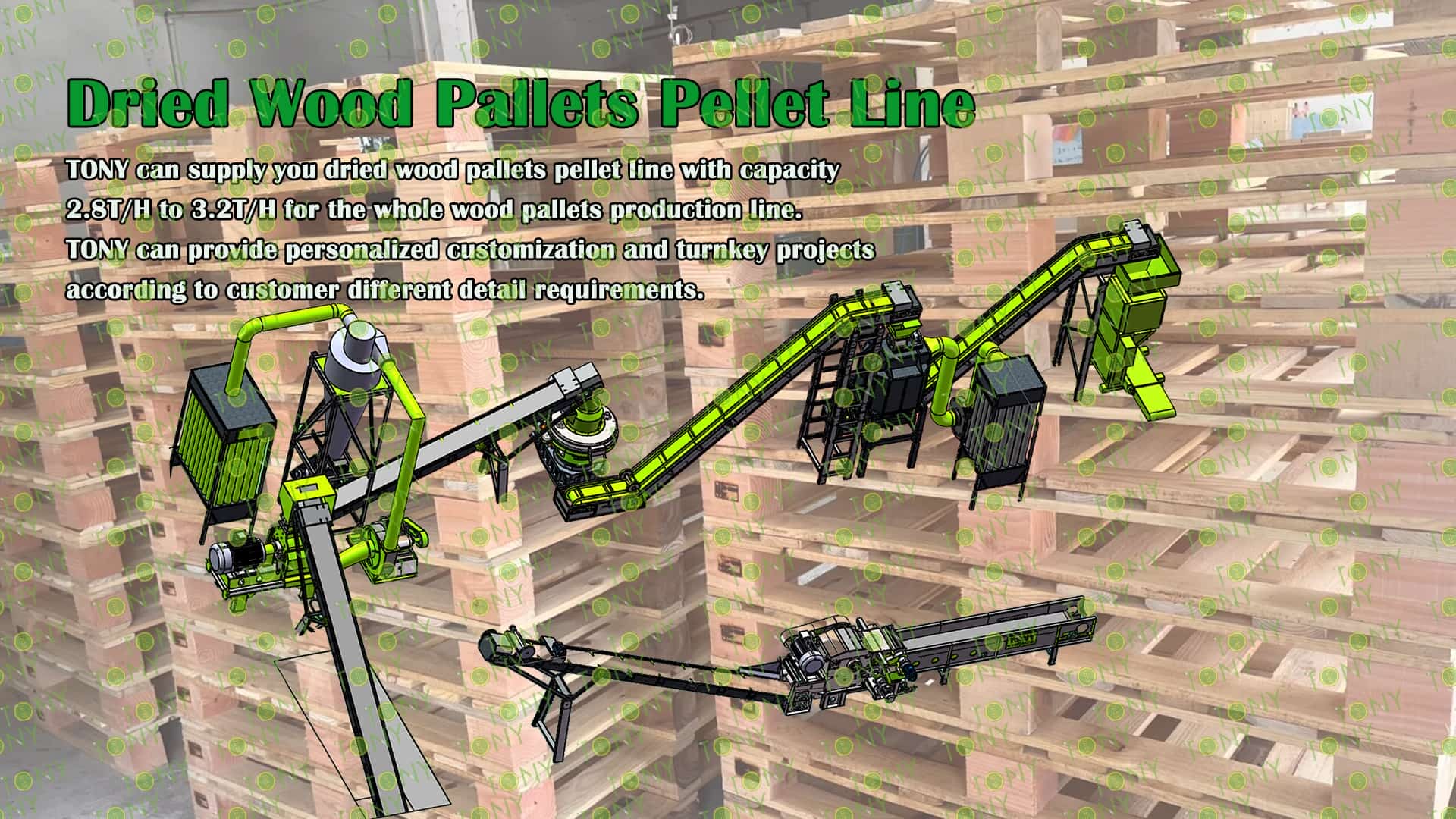 3.TONY Brand 2.8-3.2Ton /HourDried Wood Pallets Pellet Line Project Process