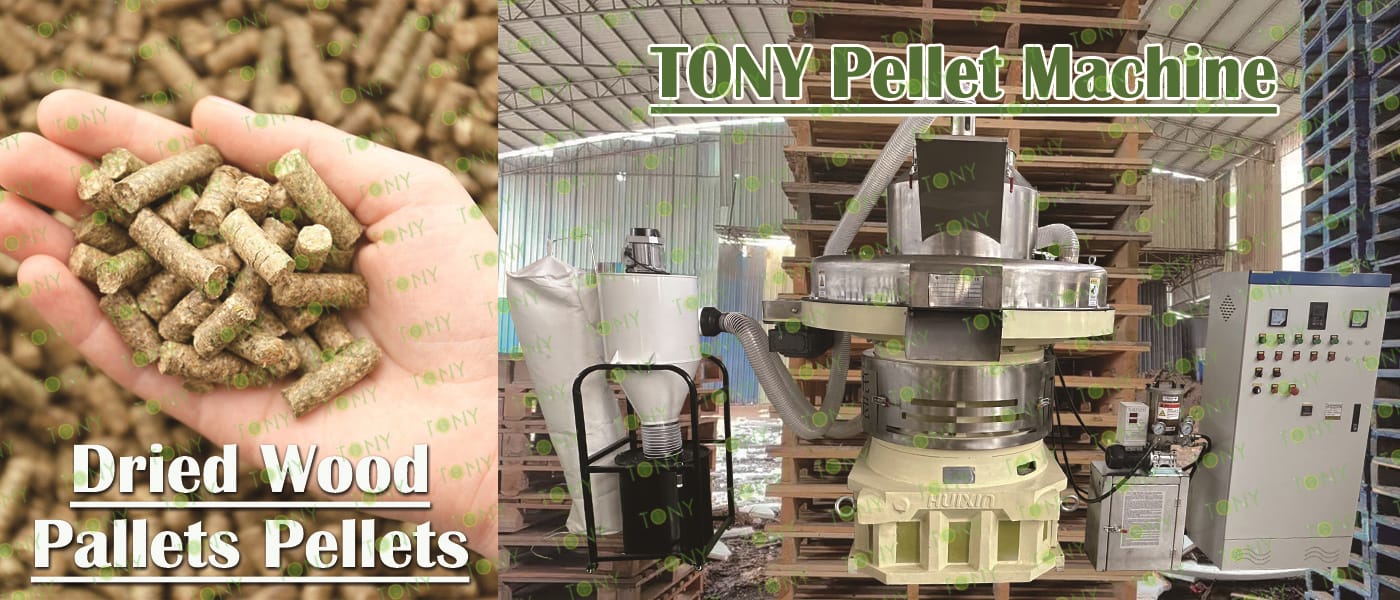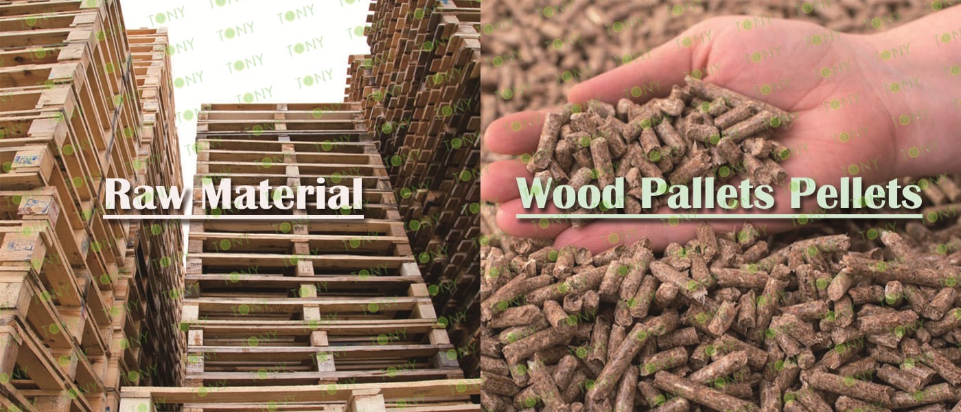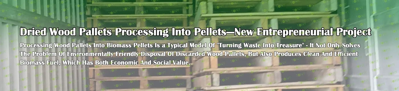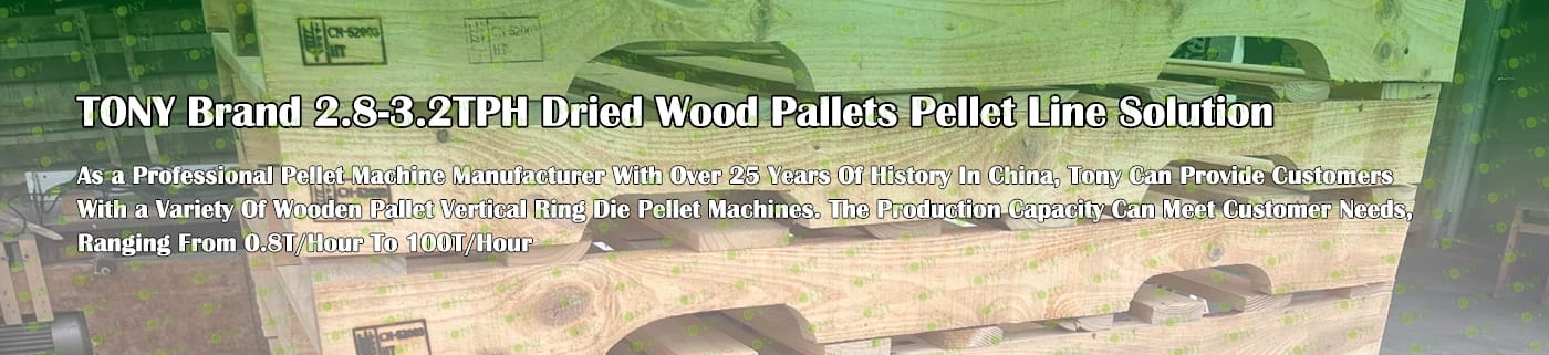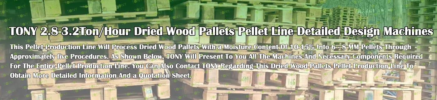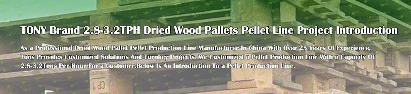 TONY Brand 2.8-3.2Ton/Hour Dried Wood Pallets Pellet Manufacturing Plant can take dried wood pallets, various types of wood - related biomass materials, such as branches, small - diameter logs, and wood shavings. After pretreatment and processing, dried wood pallets is solidified into high - density wood pellet fuel.The content of pollutants such as sulfur dioxide and nitrogen oxides produced by biomass pellets during combustion is extremely low, and the dust emission is also low, which can effectively reduce air pollution. Moreover, the raw material sources of biomass pellets are very wide, and the combustion efficiency is high. Compared with traditional fossil energy, it reduces the production and use costs and has higher economic efficiency. It has received a lot of attention and promotion.