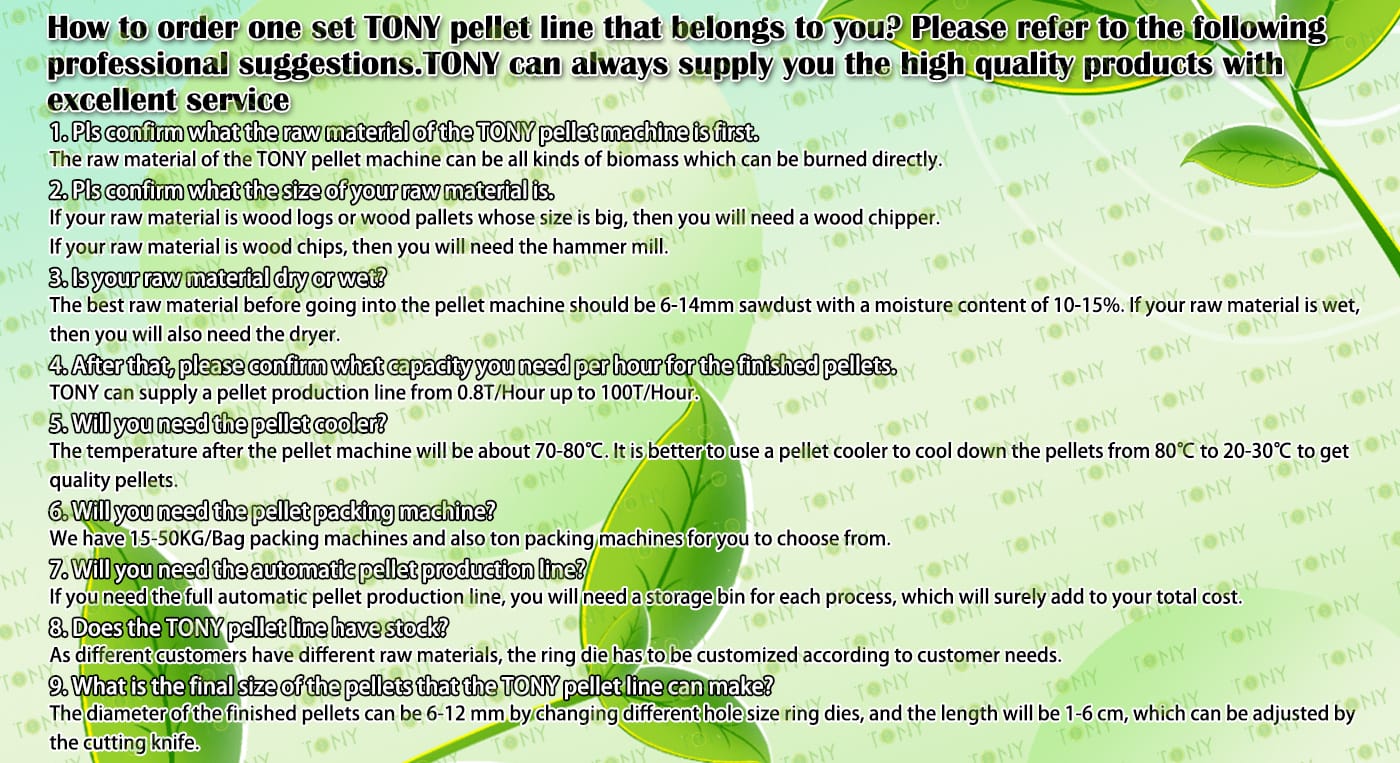 | Next, TONY Will Introduce To You All The Necessary Machinery That Will Be Used For The Whole Pellet Production Line. Some Machines Can Be Custom - Made By Customers According To Different Customers' Detailed Demands. Contact TONY For More Details, Including Quotation And Layout. | ||