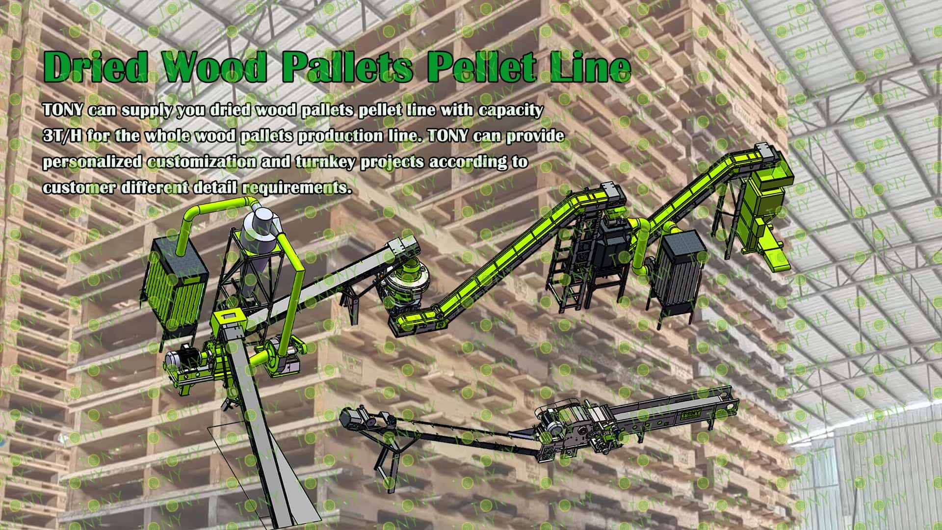 3.TONY Brand 3Ton /Hour Dried Wood Pallets Pellet Line Project Process
