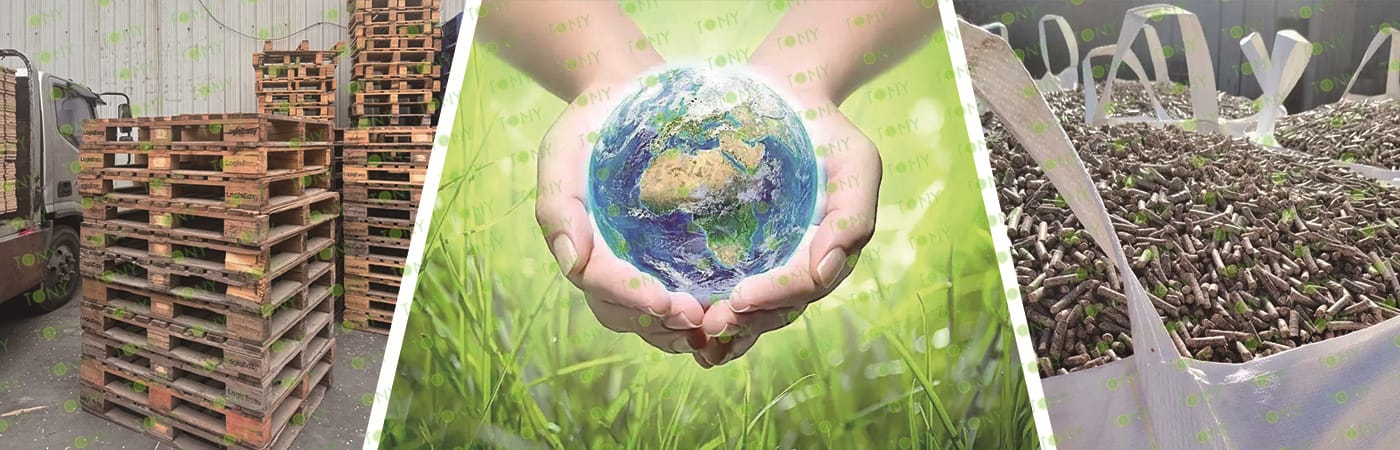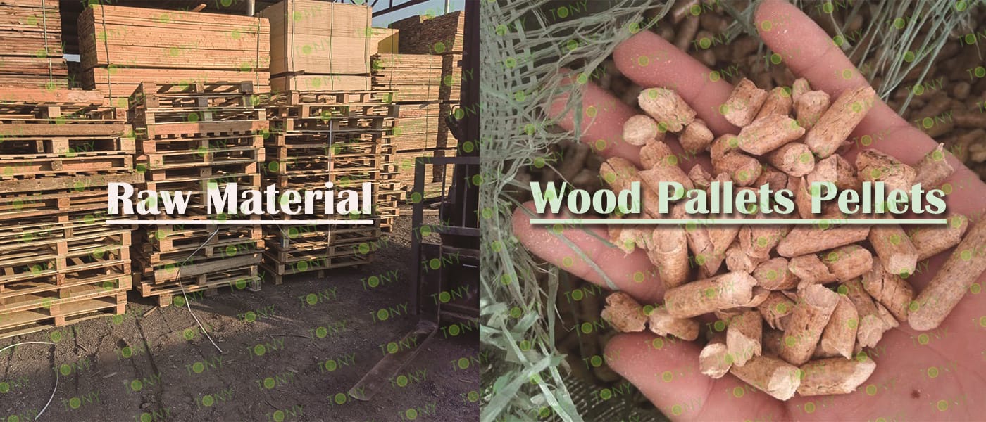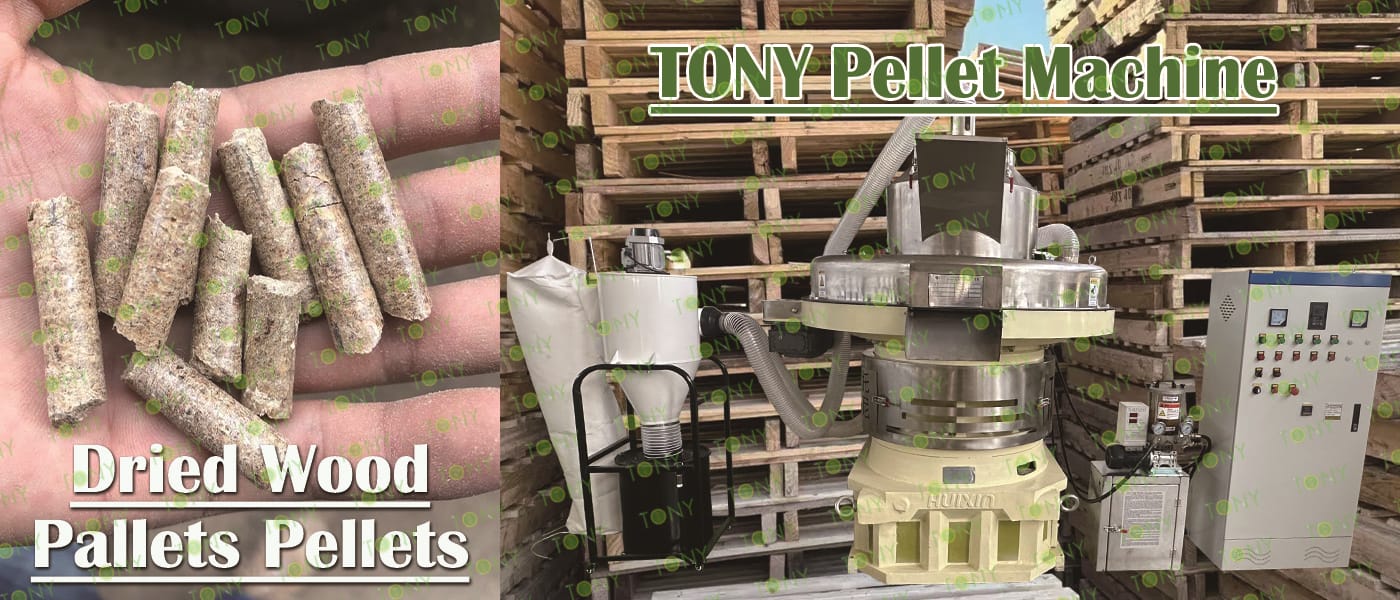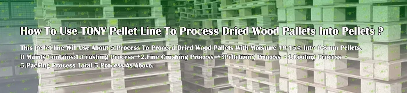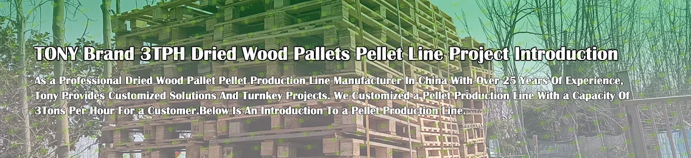 TONY Brand 3Ton/Hour Dried Wood Pallets Pellet Manufacturing Plant can take dried wood pallets, various types of wood - related biomass materials, such as branches, small - diameter logs, and wood shavings. After pretreatment and processing, dried wood pallets is solidified into high - density wood pellet fuel.The content of pollutants such as sulfur dioxide and nitrogen oxides produced by biomass pellets during combustion is extremely low, and the dust emission is also low, which can effectively reduce air pollution. Moreover, the raw material sources of biomass pellets are very wide, and the combustion efficiency is high. Compared with traditional fossil energy, it reduces the production and use costs and has higher economic efficiency. It has received a lot of attention and promotion.
