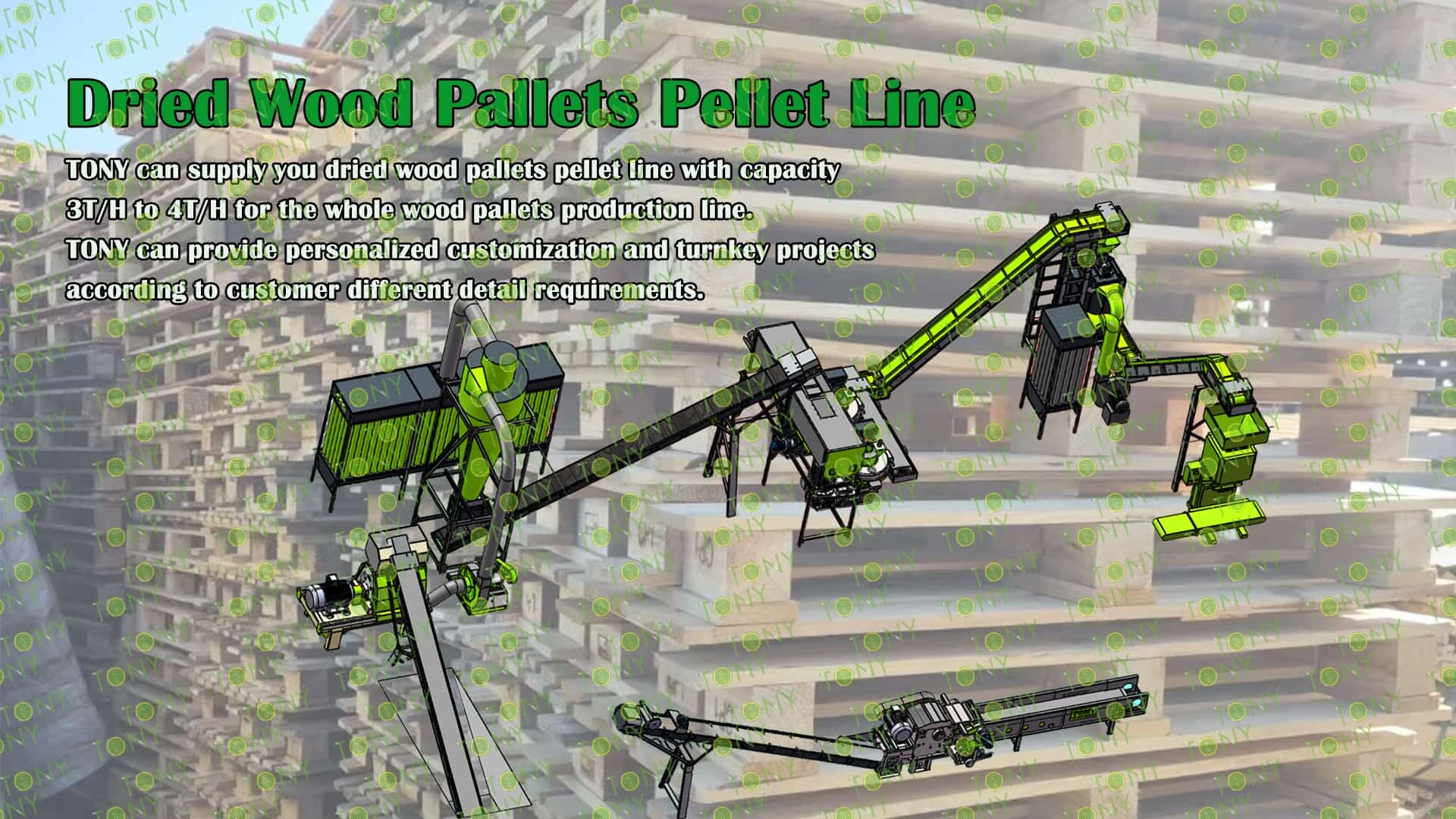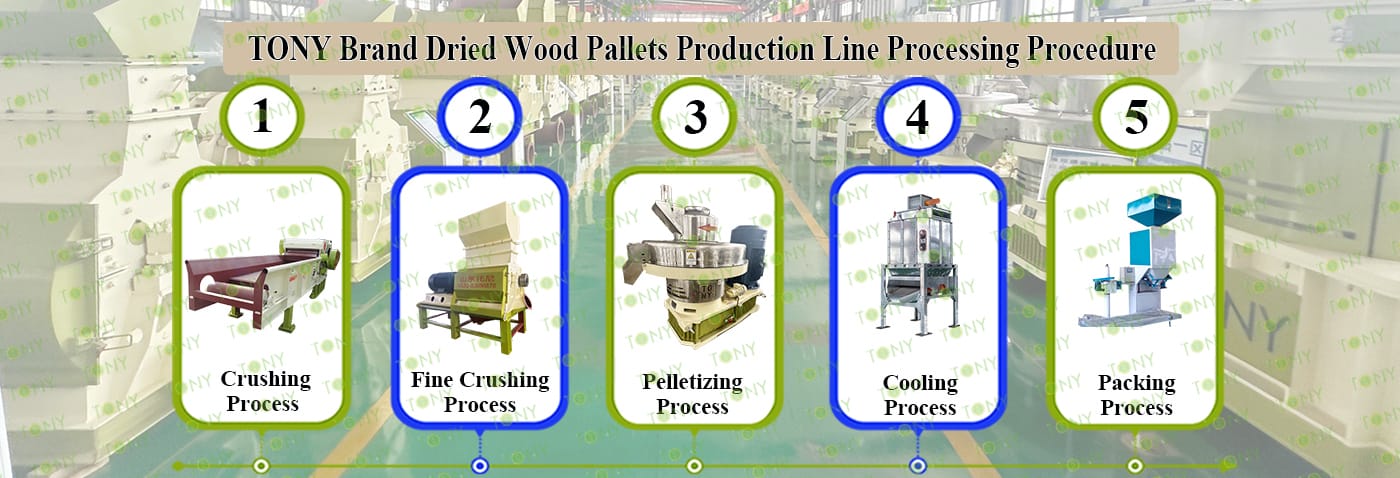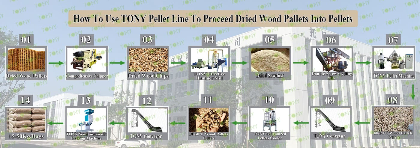 3.TONY Brand 3-4Ton /Hour Dried Wood Pallets Pellet Line Project Process