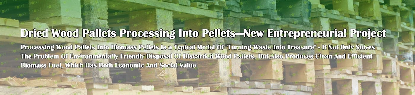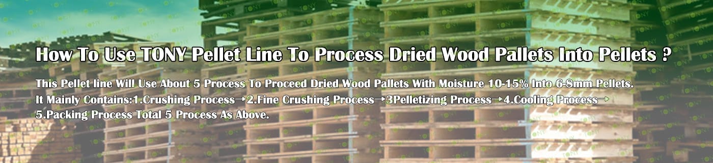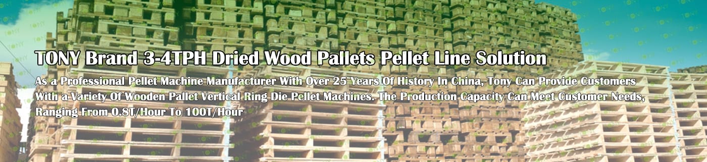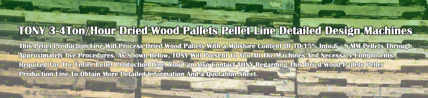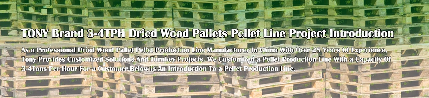 TONY Brand 3-4Ton/Hour Dried Wood Pallets Pellet Manufacturing Plant can take dried wood pallets, various types of wood - related biomass materials, such as branches, small - diameter logs, and wood shavings. After pretreatment and processing, dried wood pallets is solidified into high - density wood pellet fuel.The content of pollutants such as sulfur dioxide and nitrogen oxides produced by biomass pellets during combustion is extremely low, and the dust emission is also low, which can effectively reduce air pollution. Moreover, the raw material sources of biomass pellets are very wide, and the combustion efficiency is high. Compared with traditional fossil energy, it reduces the production and use costs and has higher economic efficiency. It has received a lot of attention and promotion.
