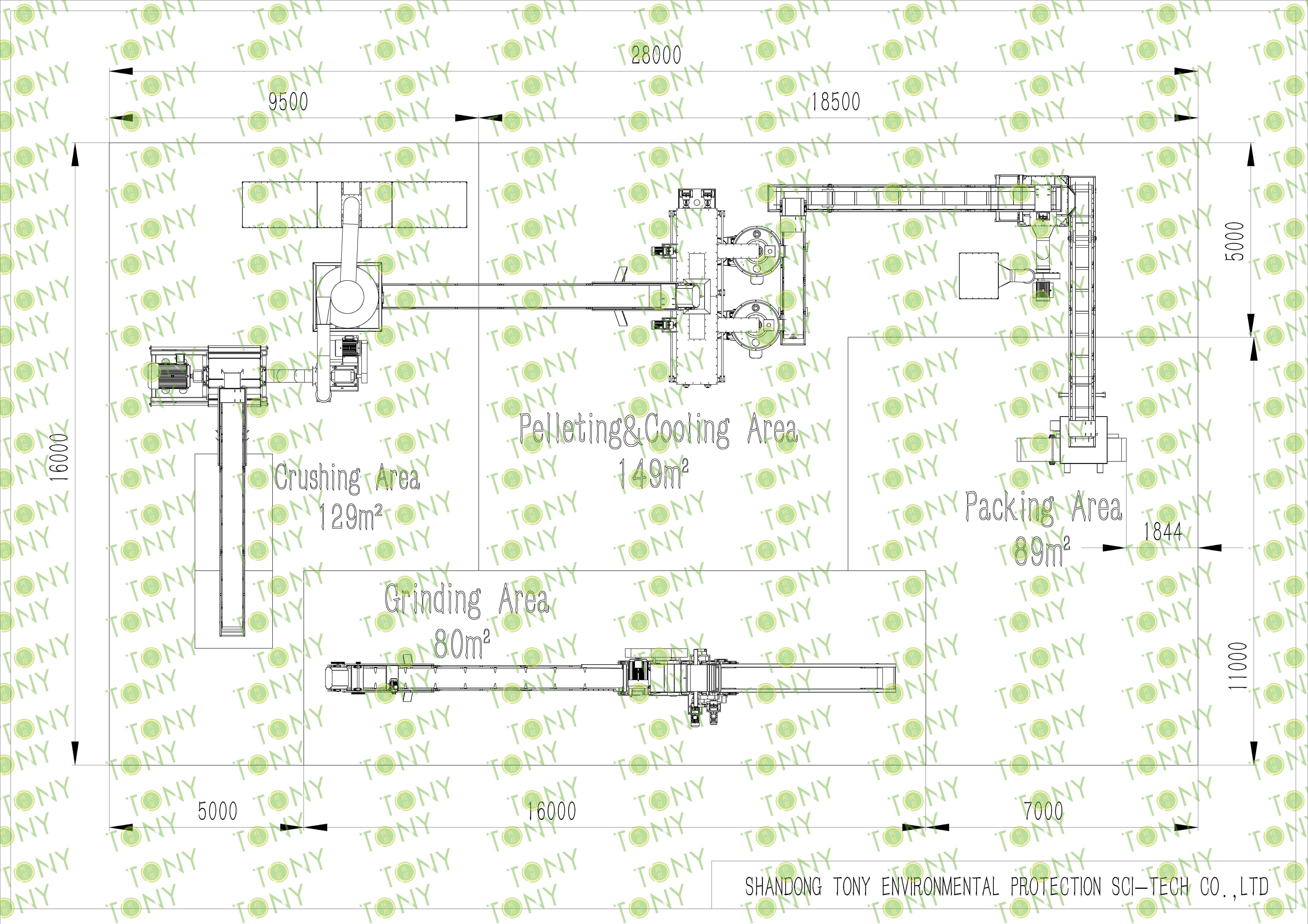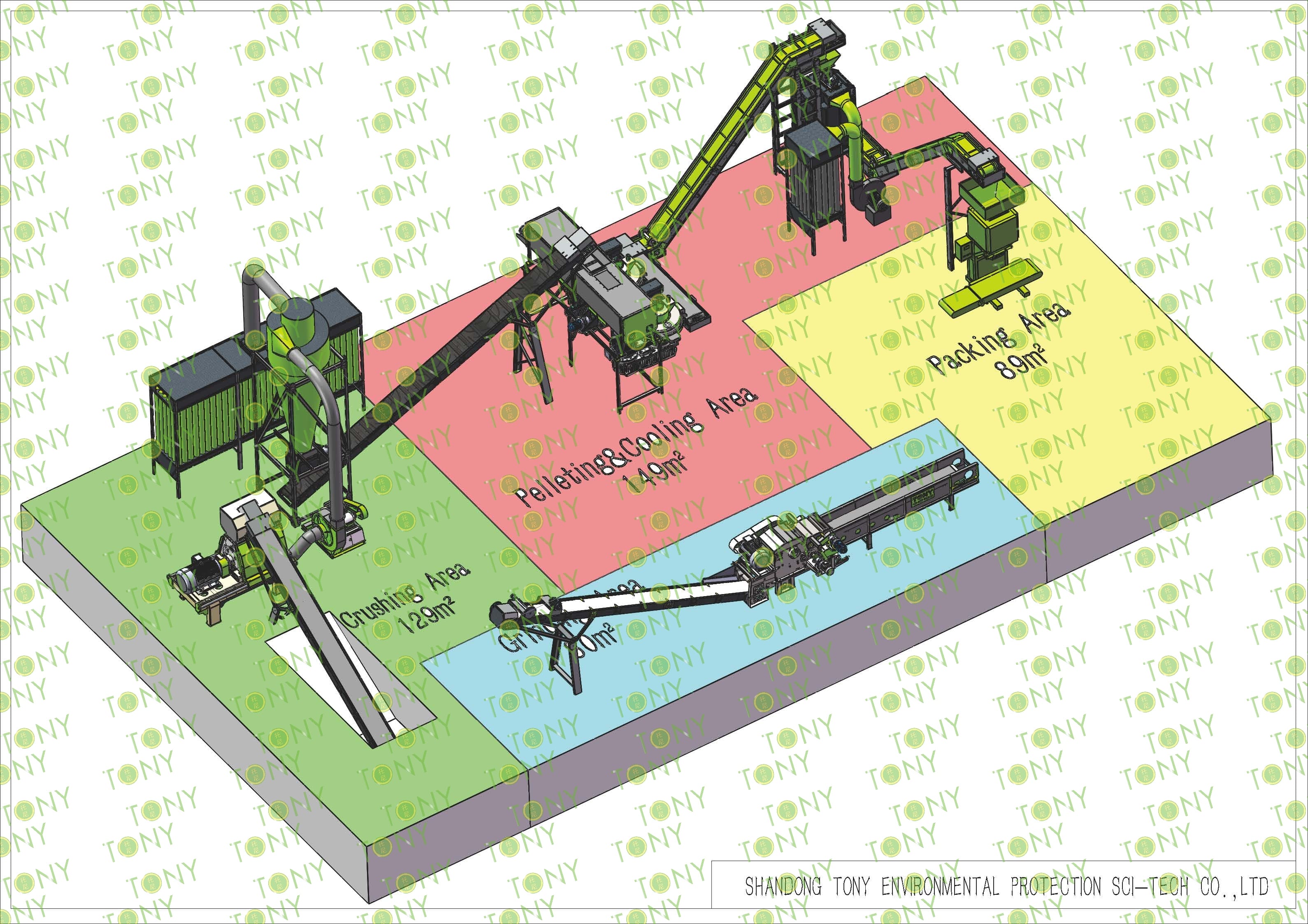 4.Main Machine: Comprehensive Chipper,Hammer Mill, TONY Pellet MachineTYJ551-Ⅲ-110KW,Pellets Cooler,Packing Machine And Belt Conveyors
