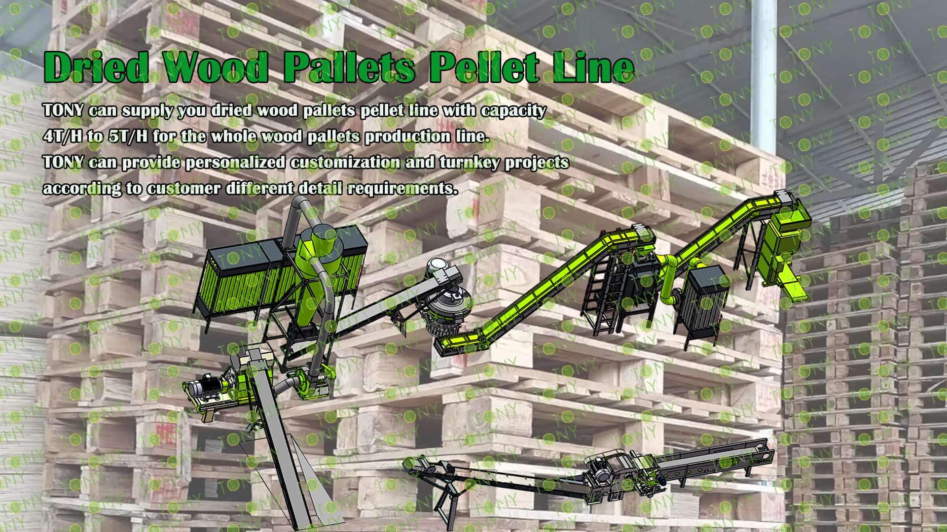 3.TONY Brand 4-5Ton /Hour Dried Wood Pallets Pellet Line Project Process