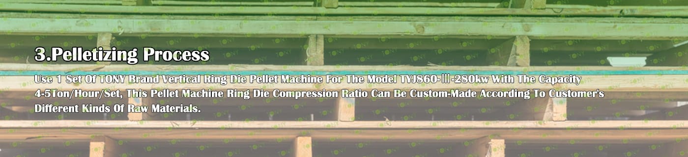 4.Main Machine: Comprehensive Chipper,Hammer Mill, TONY Pellet Machine TYJ860-Ⅲ-280KW,Pellets Cooler,Packing Machine And Belt Conveyors