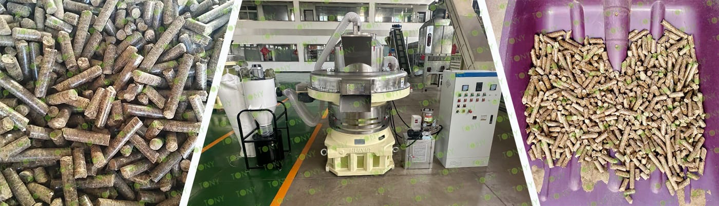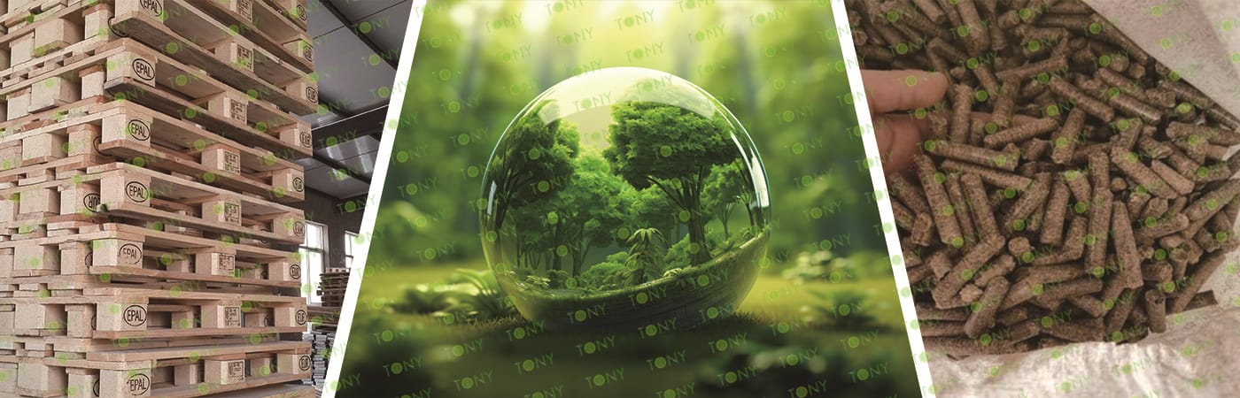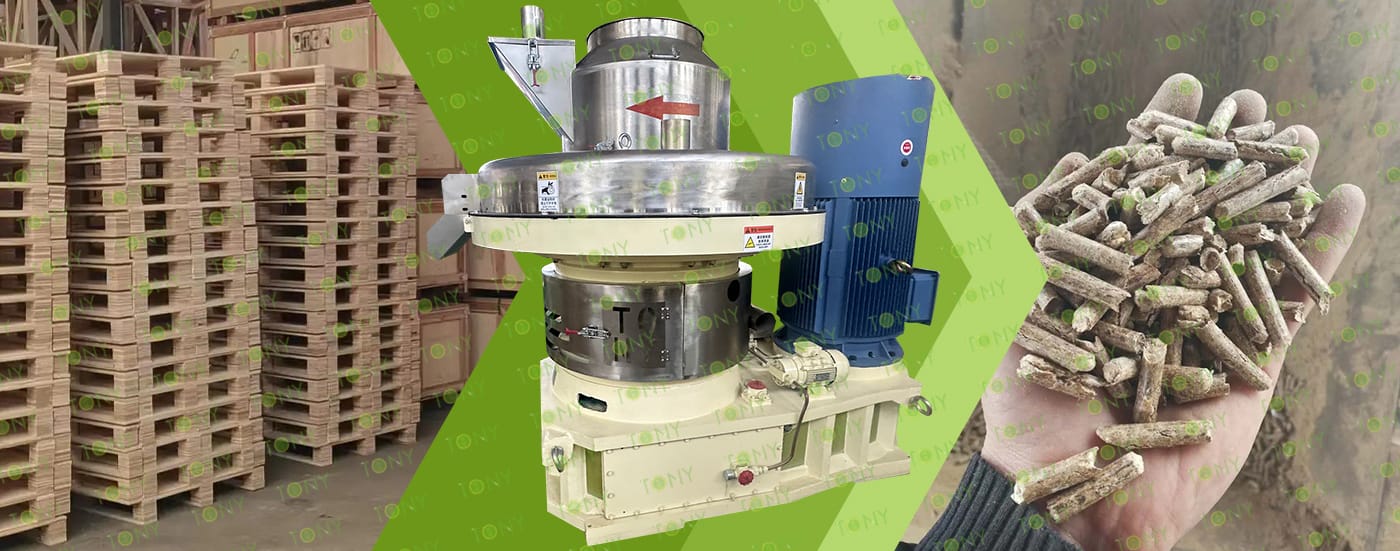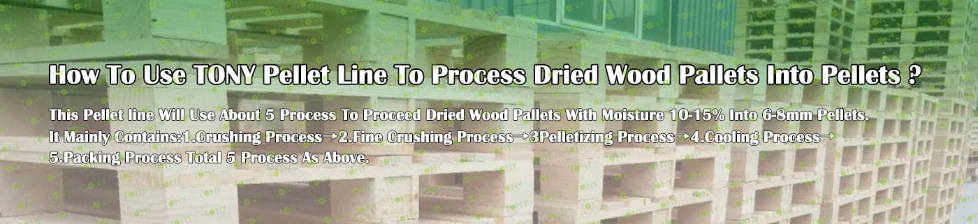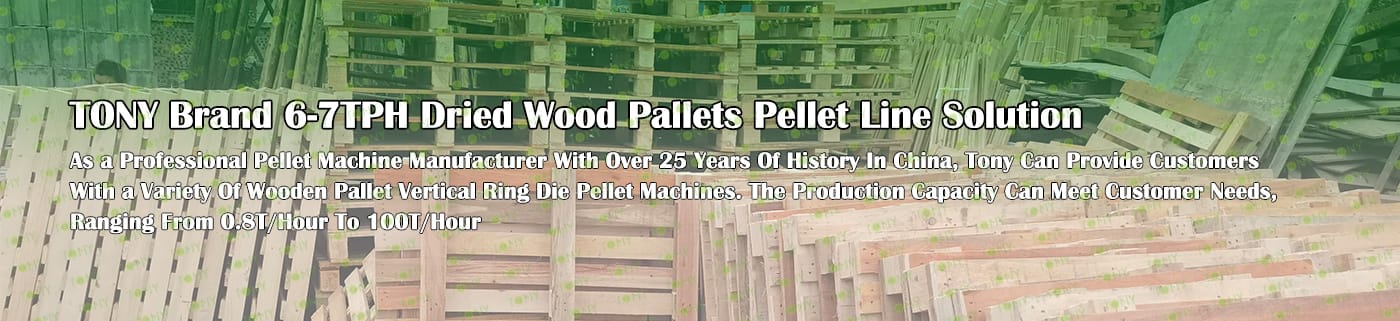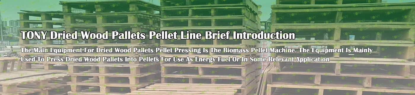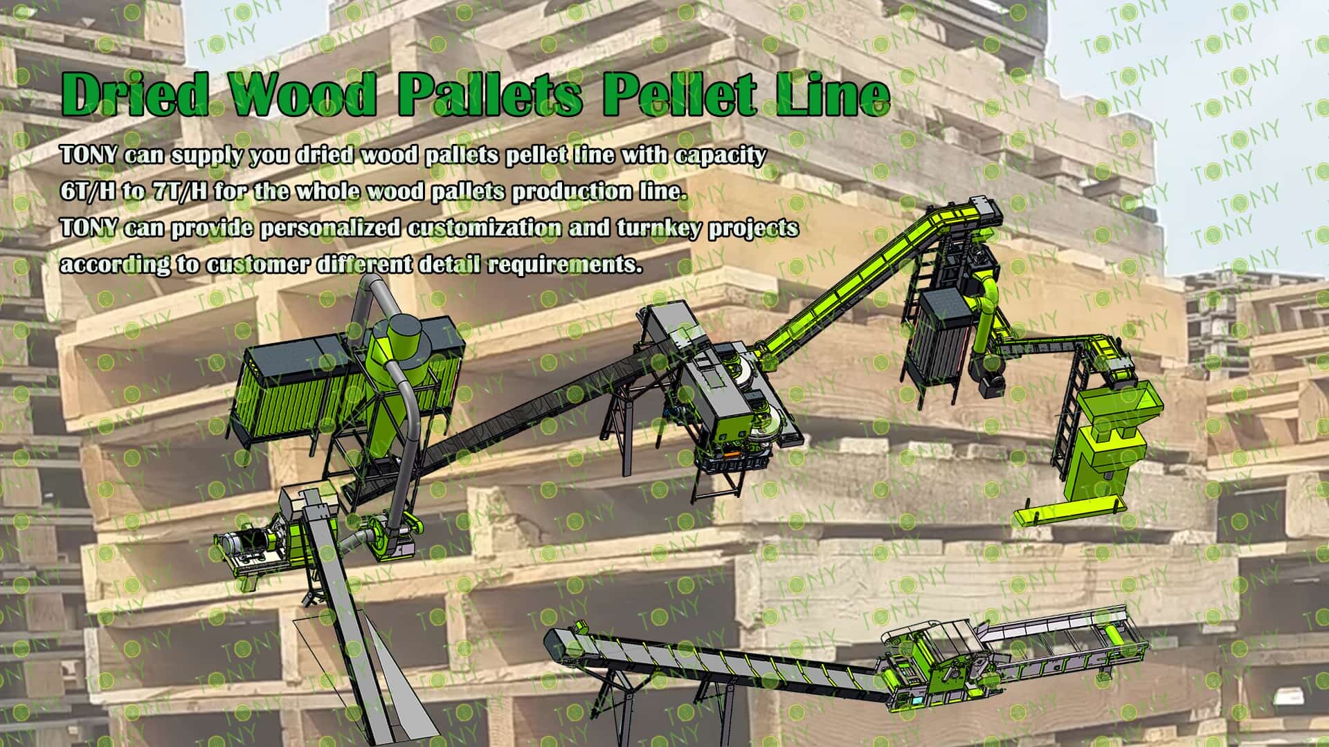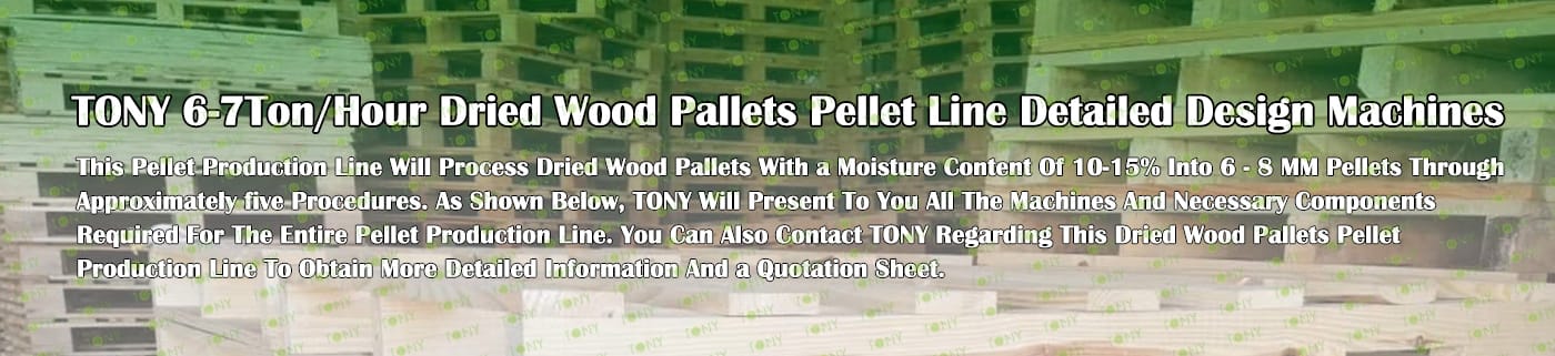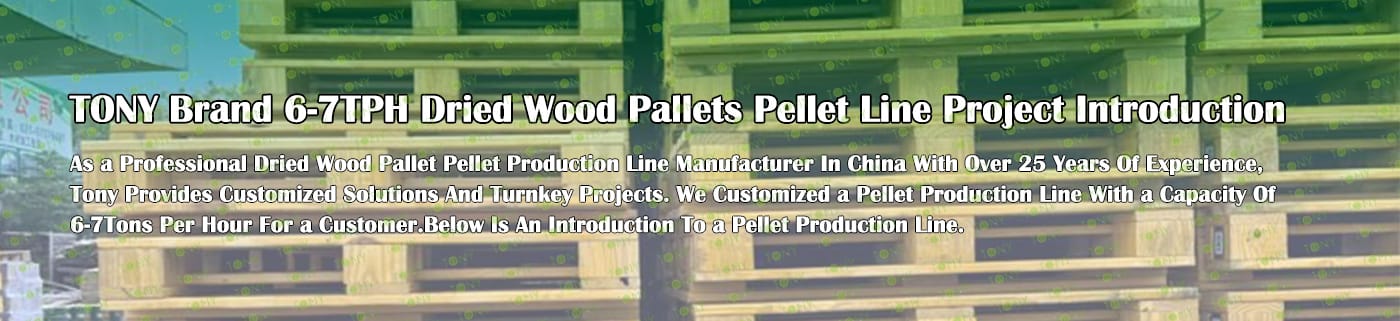 TONY Brand 6-7Ton/Hour Dried Wood Pallets Pellet Manufacturing Plant can take dried wood pallets, various types of wood - related biomass materials, such as branches, small - diameter logs, and wood shavings. After pretreatment and processing, dried wood pallets is solidified into high - density wood pellet fuel.The content of pollutants such as sulfur dioxide and nitrogen oxides produced by biomass pellets during combustion is extremely low, and the dust emission is also low, which can effectively reduce air pollution. Moreover, the raw material sources of biomass pellets are very wide, and the combustion efficiency is high. Compared with traditional fossil energy, it reduces the production and use costs and has higher economic efficiency. It has received a lot of attention and promotion.