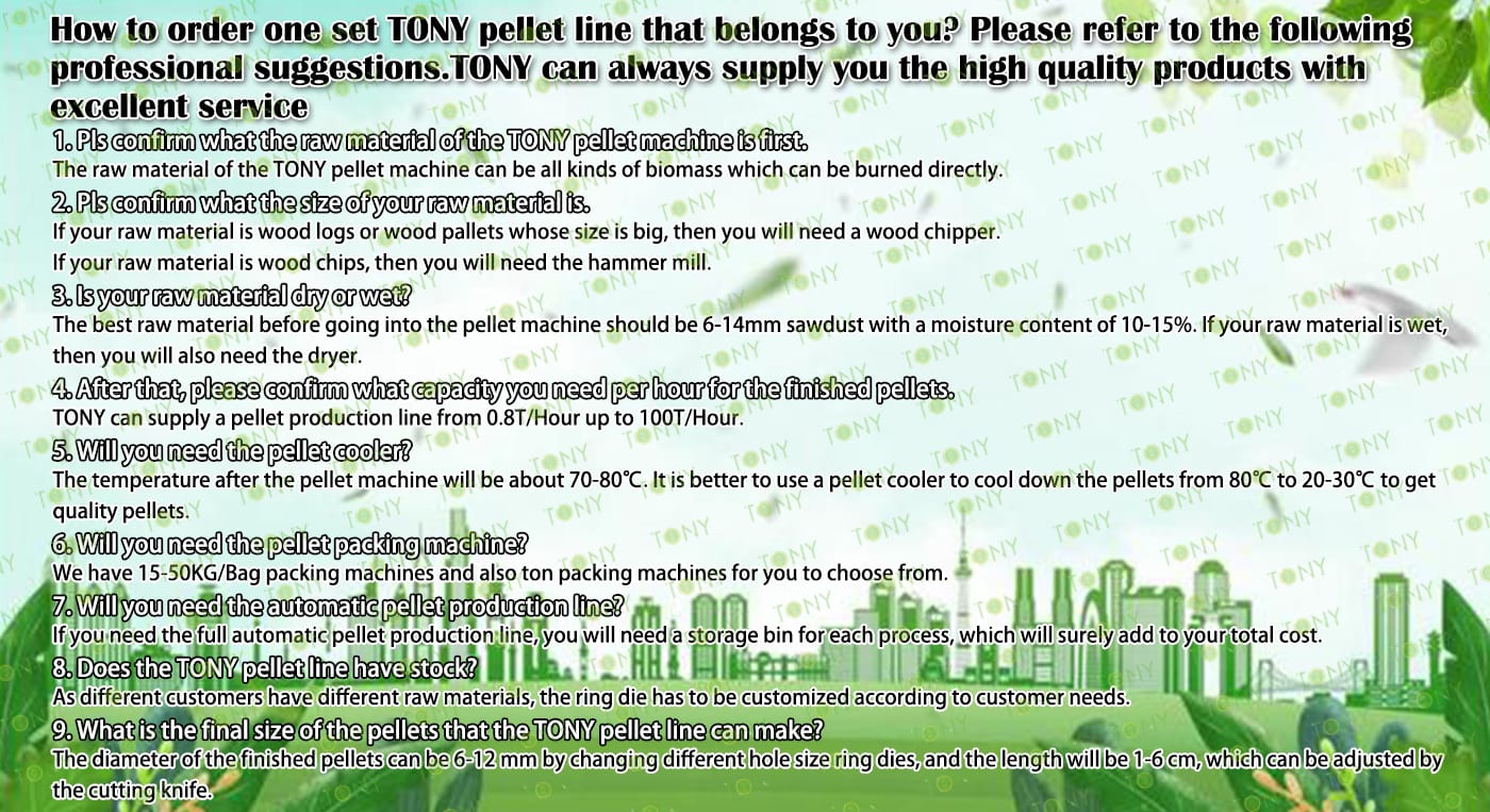 | Next, TONY Will Introduce To You All The Necessary Machinery That Will Be Used For The Whole Pellet Production Line. Some Machines Can Be Custom - Made By Customers According To Different Customers' Detailed Demands. Contact TONY For More Details, Including Quotation And Layout. | ||