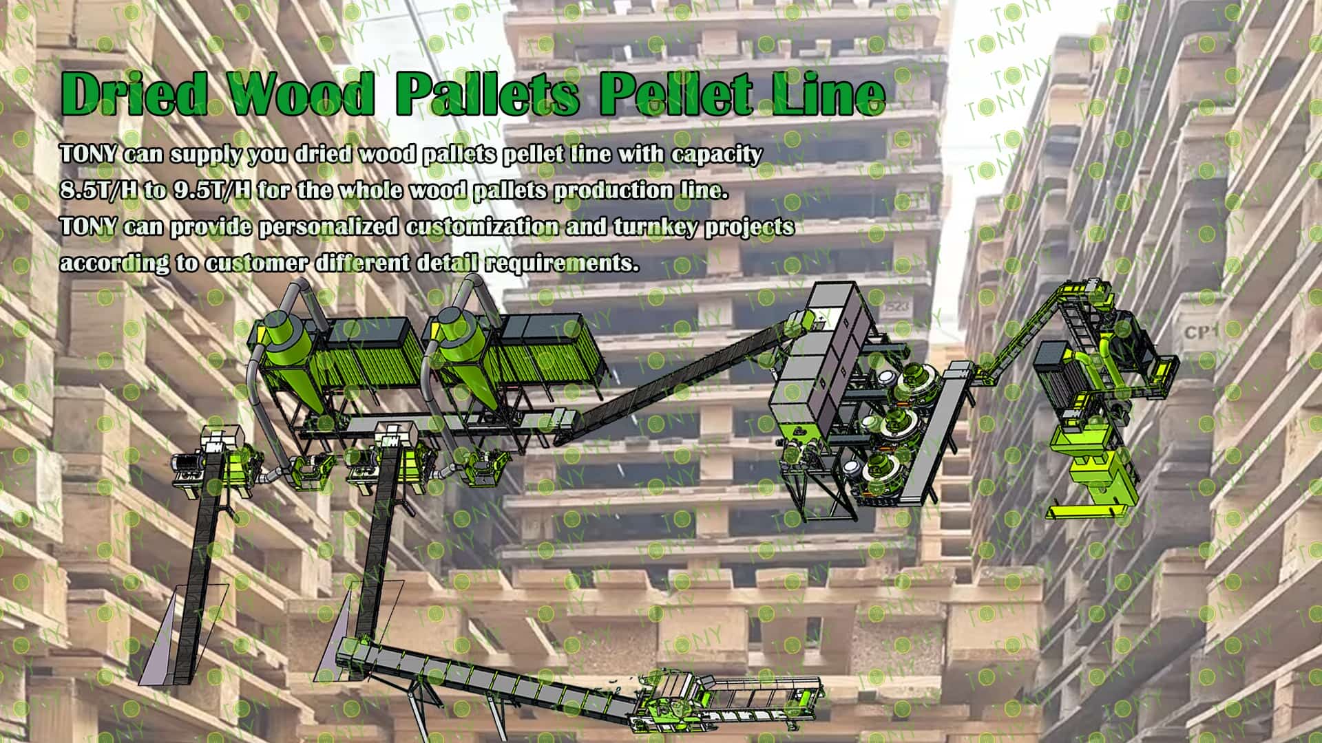 3.TONY Brand 8.5-9.5Ton /Hour Dried Wood Pallets Pellet Line Project Process