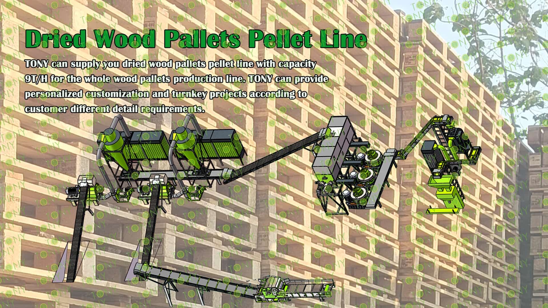 3.TONY Brand 9Ton /Hour Dried Wood Pallets Pellet Line Project Process
