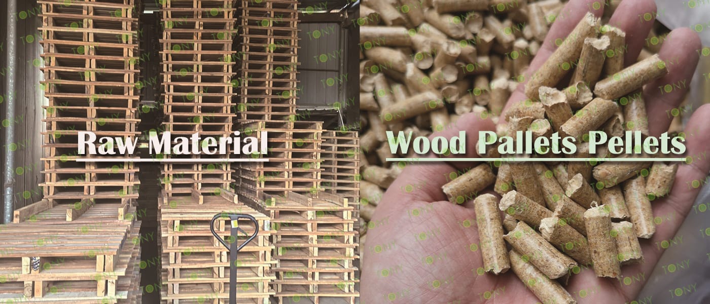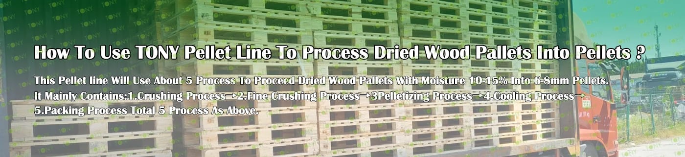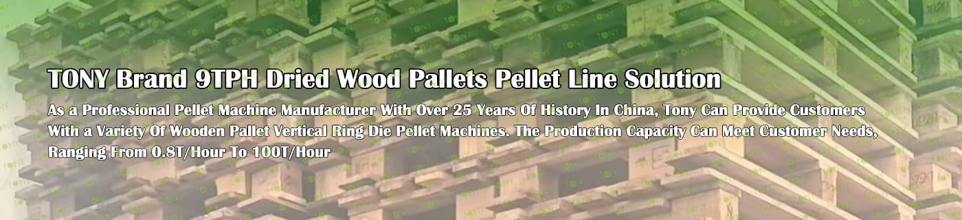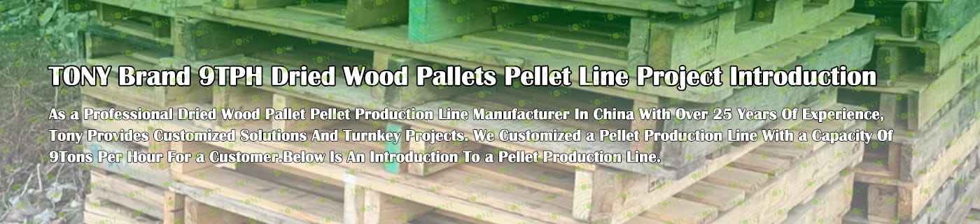 TONY Brand 9Ton/Hour Dried Wood Pallets Pellet Manufacturing Plant can take dried wood pallets, various types of wood - related biomass materials, such as branches, small - diameter logs, and wood shavings. After pretreatment and processing, dried wood pallets is solidified into high - density wood pellet fuel.The content of pollutants such as sulfur dioxide and nitrogen oxides produced by biomass pellets during combustion is extremely low, and the dust emission is also low, which can effectively reduce air pollution. Moreover, the raw material sources of biomass pellets are very wide, and the combustion efficiency is high. Compared with traditional fossil energy, it reduces the production and use costs and has higher economic efficiency. It has received a lot of attention and promotion.