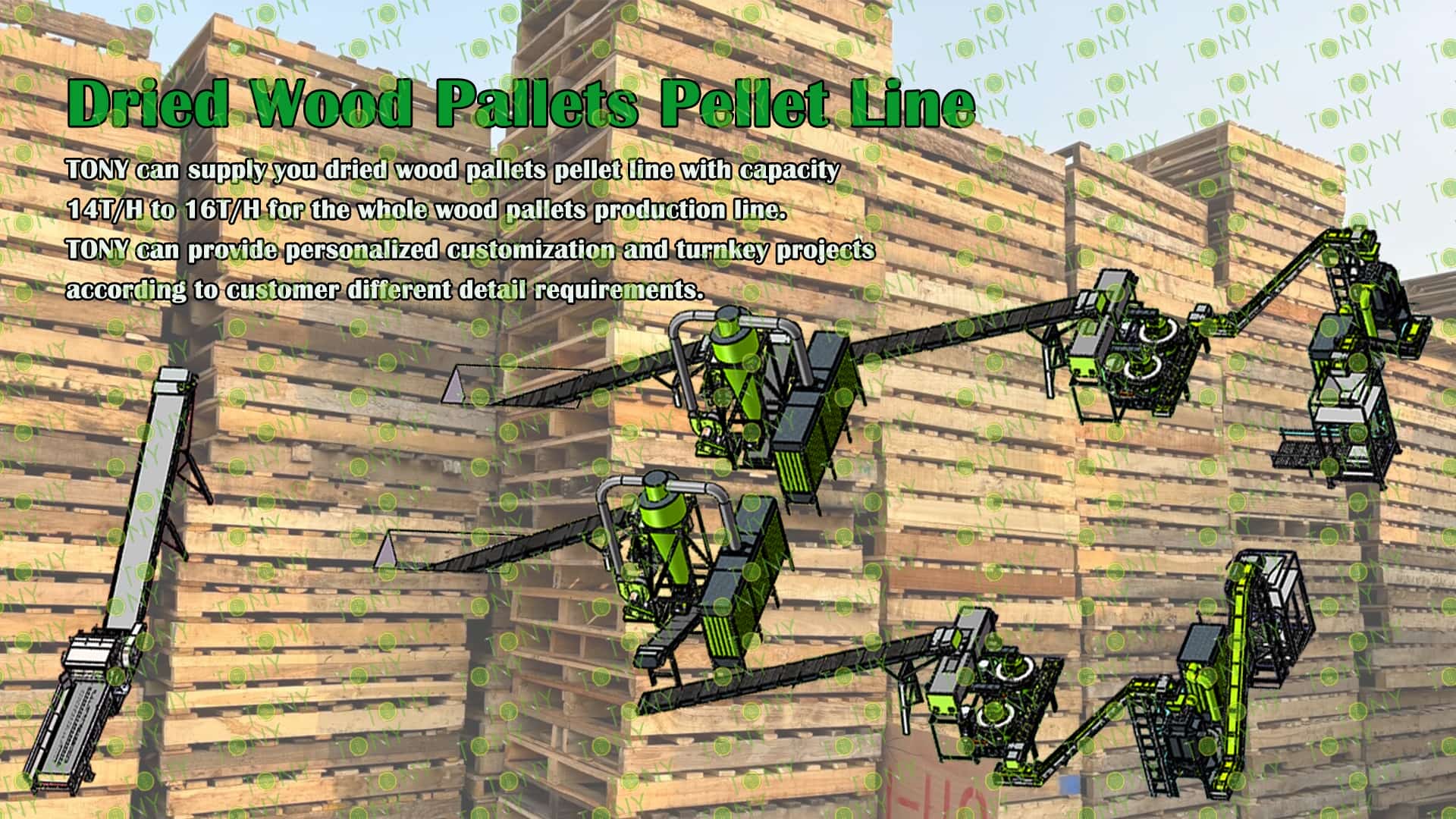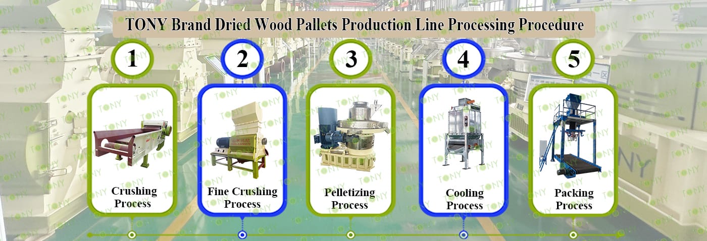 3.TONY Brand 14-16Ton /HourDried Wood Pallets Pellet Line Project Process