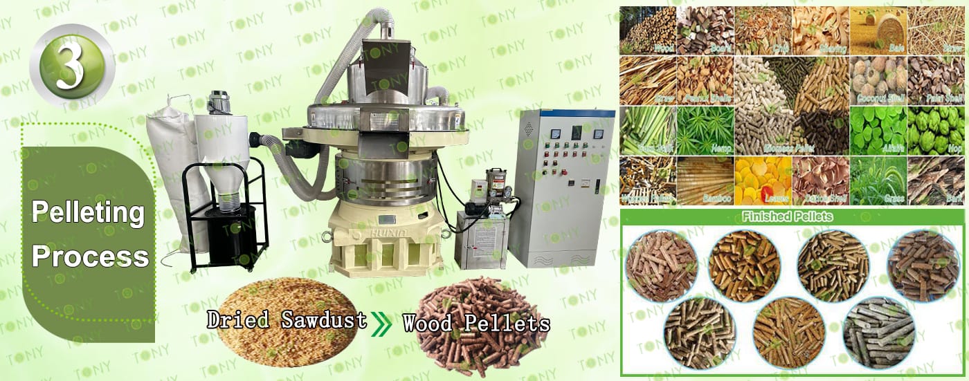 High-Temperature and High-Pressure Forming: After the raw material enters the pelletizer, the friction between the rollers and the die, combined with the high temperature, softens the lignin and bonds the cellulose molecules, forming pellets.