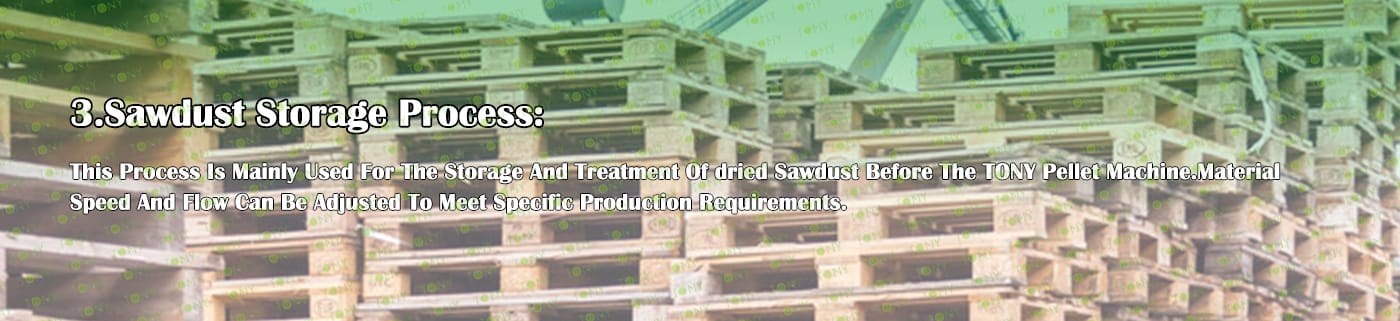 B.TONY brand sawdust storage to storage the sawdust that comes out of the hammer mill.This process can be optional by customer.If customer do not chose the storage bin,he can storage the sawdust on the ground directly which may need some labour.