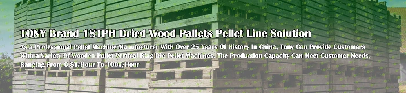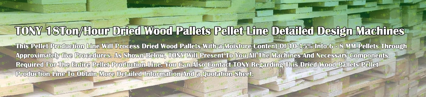TONY Brand 18Ton/Hour Dried Wood Pallets Pellet Manufacturing Plant can take dried wood pallets, various types of wood - related biomass materials, such as branches, small - diameter logs, and wood shavings. After pretreatment and processing, dried wood pallets is solidified into high - density wood pellet fuel.The content of pollutants such as sulfur dioxide and nitrogen oxides produced by biomass pellets during combustion is extremely low, and the dust emission is also low, which can effectively reduce air pollution. Moreover, the raw material sources of biomass pellets are very wide, and the combustion efficiency is high. Compared with traditional fossil energy, it reduces the production and use costs and has higher economic efficiency. It has received a lot of attention and promotion.