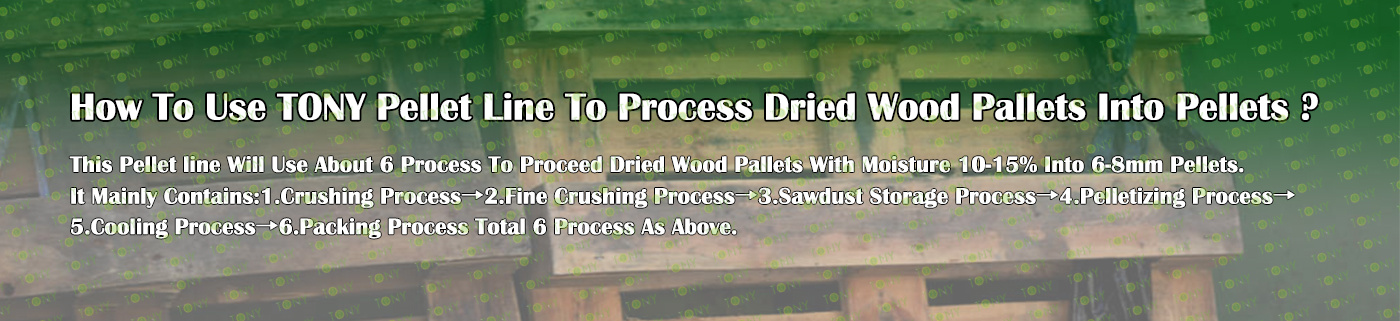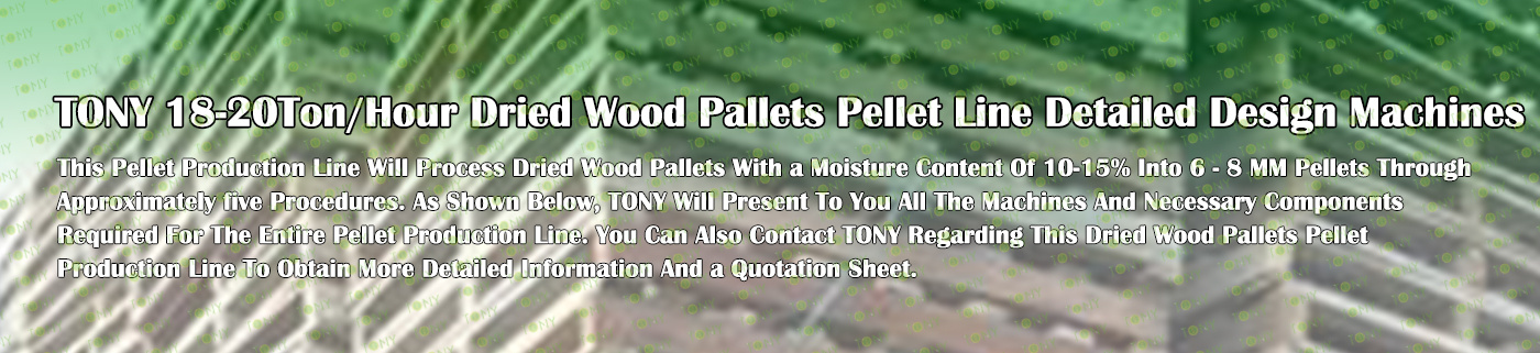 TONY Brand 18-20 Ton/Hour Dried Wood Pallets Pellet Manufacturing Plant can take dried wood pallets, various types of wood - related biomass materials, such as branches, small - diameter logs, and wood shavings. After pretreatment and processing, dried wood pallets is solidified into high - density wood pellet fuel.The content of pollutants such as sulfur dioxide and nitrogen oxides produced by biomass pellets during combustion is extremely low, and the dust emission is also low, which can effectively reduce air pollution. Moreover, the raw material sources of biomass pellets are very wide, and the combustion efficiency is high. Compared with traditional fossil energy, it reduces the production and use costs and has higher economic efficiency. It has received a lot of attention and promotion.